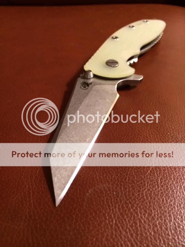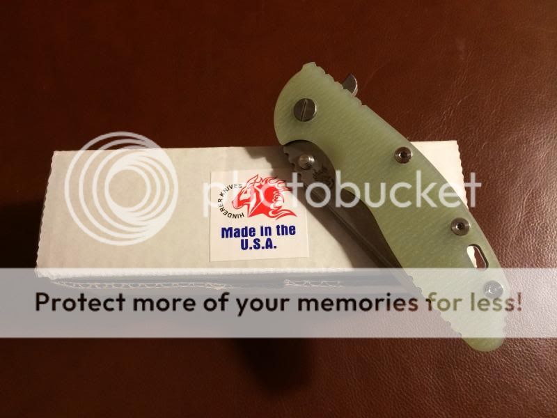 Very lightly used/carried Hinderer XM-18 3.5" Wharncliffe flipper with translucent green scale. $595 net PayPal (either add 3% or send as Gift) shipped/insured. Has been sharpened on the Wicked Edge to 36* inclusive an has an incredibly sharp hair-whittling edge on it! Carried sparingly, but it has seen some pocket time (but doesn't show it, no scratches, scale and clip look brand new). Very smooth, very early and perfect lock up (zero blade play in any direction), perfectly centered. Flips great! All the usual Hinderer awesomeness.