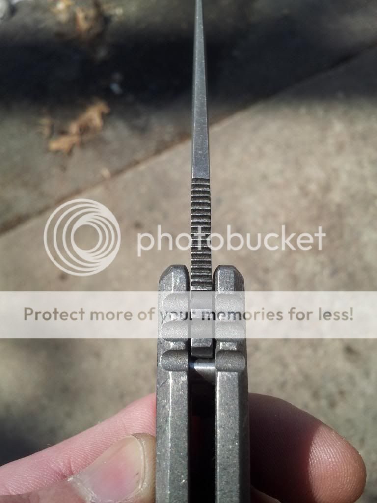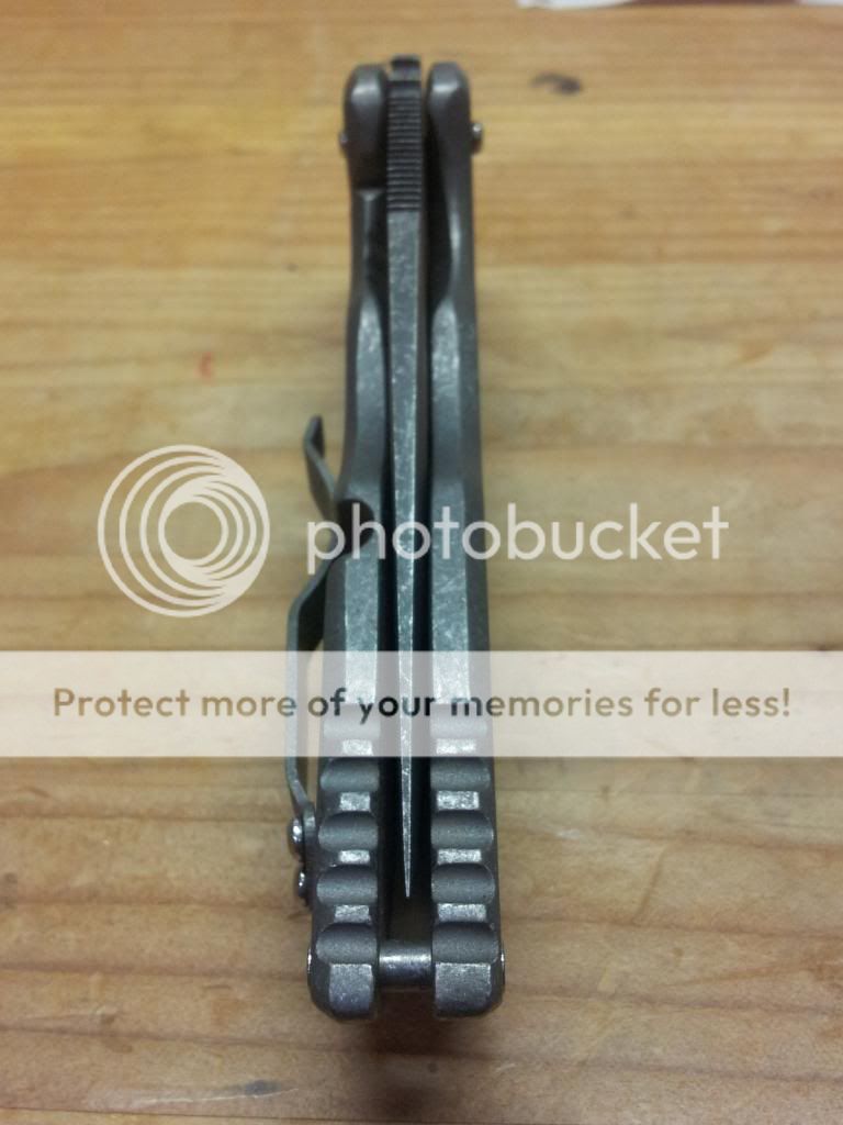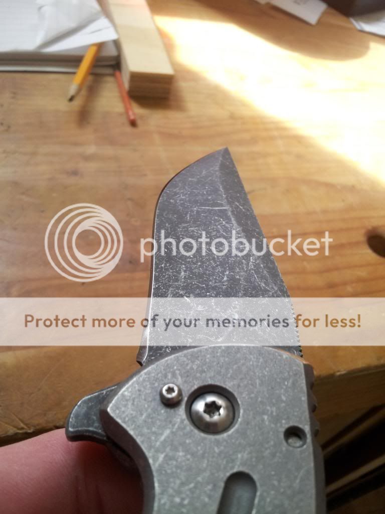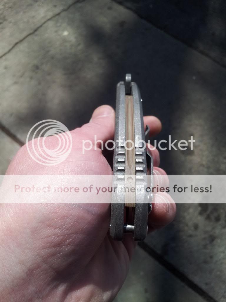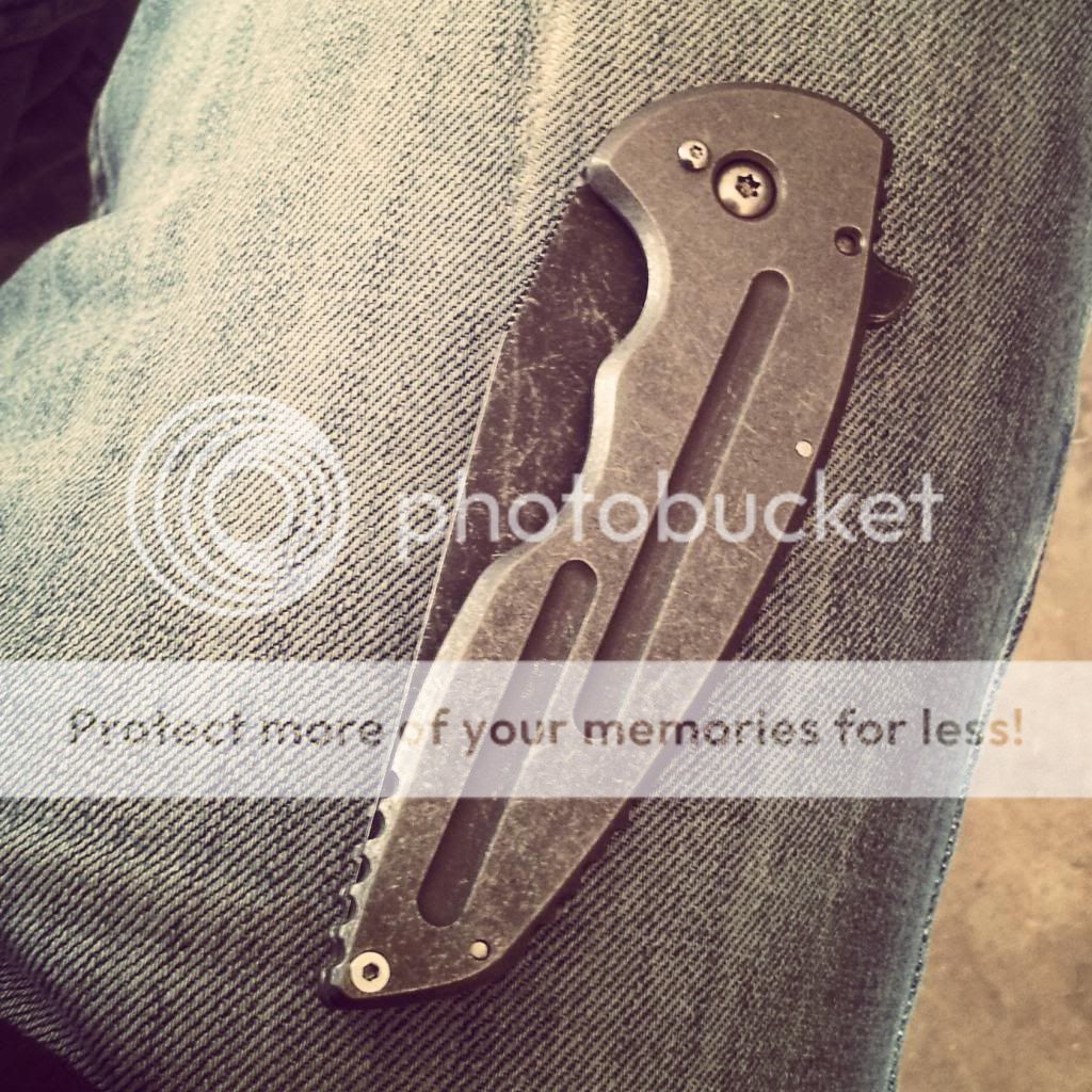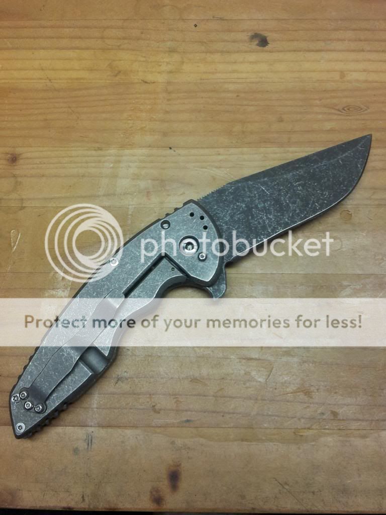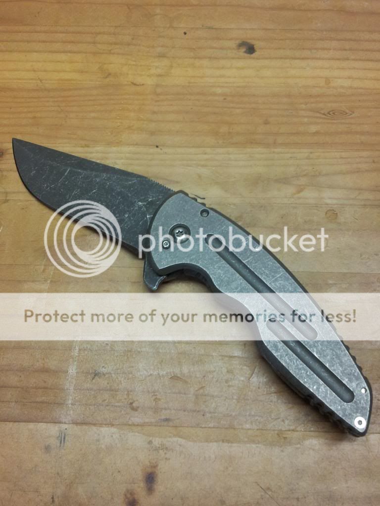 A10 Alpha Prototype Framelock- Jake Hoback and Chad "Alphahunter" DeTalente put this knife into existence. Amazing knife but sadly I need to raise some funds. OAL is a hair over 8 inches. 3 3/8 inch blade. Lock up is solid and at about 40%-45%. Brown G10 backspacer. Stonewashed blade and titanium handles (The stonewash is freakin' sweet). I "talked" with Alphahunter on IG and he told me a lot of the history of this knife...it used to be his personal carry after Jake built it for him...it was built to be a "slicer"....it was sold on a custom knife website (if you Google it, you can see where it was sold). I was told that this is quite the piece of "Hoback History". Full disclosure: I can hear a faint "rattle" in the pivot when I shake the knife by my ear (when it's closed..I try not to shake sharp objects next to my head). I contacted Jake and he said that he'd replace the pivot as that's what he thinks is the issue, this would be at a cost of $80.00. I'm taking that cost out of my asking price. **SOLD** PayPal preferred. (gift or add 3.5%). I'll cover basic shipping (with $50 insurance, if you want more add that to the cost please). It's posted on multiple forums so time stamp counts. First "I'll take it" followed by PM or email gets it. CONUS (unless you agree that once it's out my hands that you take full responsibility for the knife). Thanks for looking and if you have any questions PM me or email me.