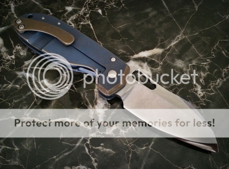 Blue anodized with gold trim stonewashed titanium frame lock scales