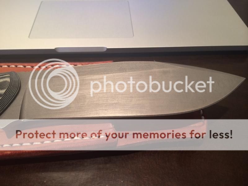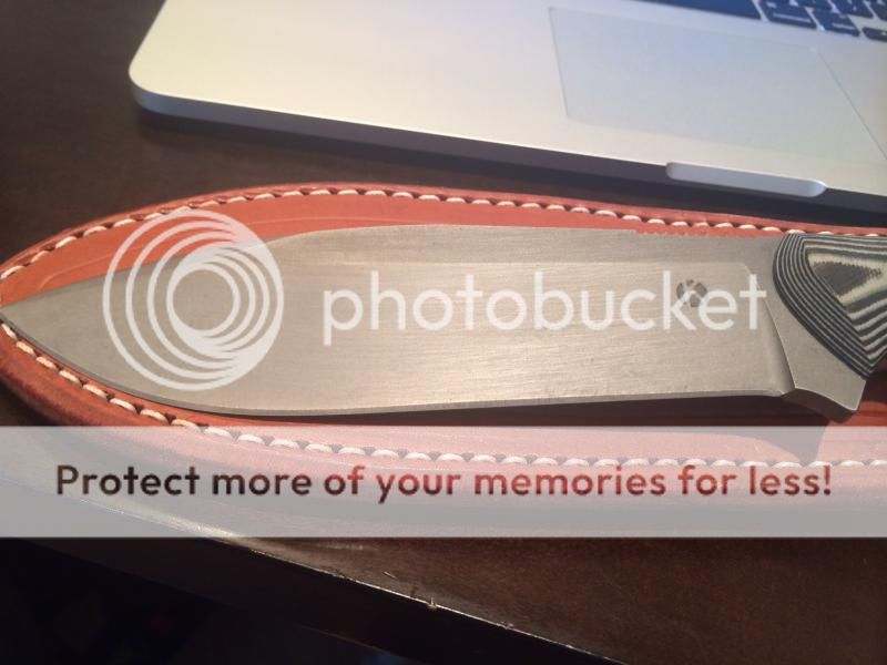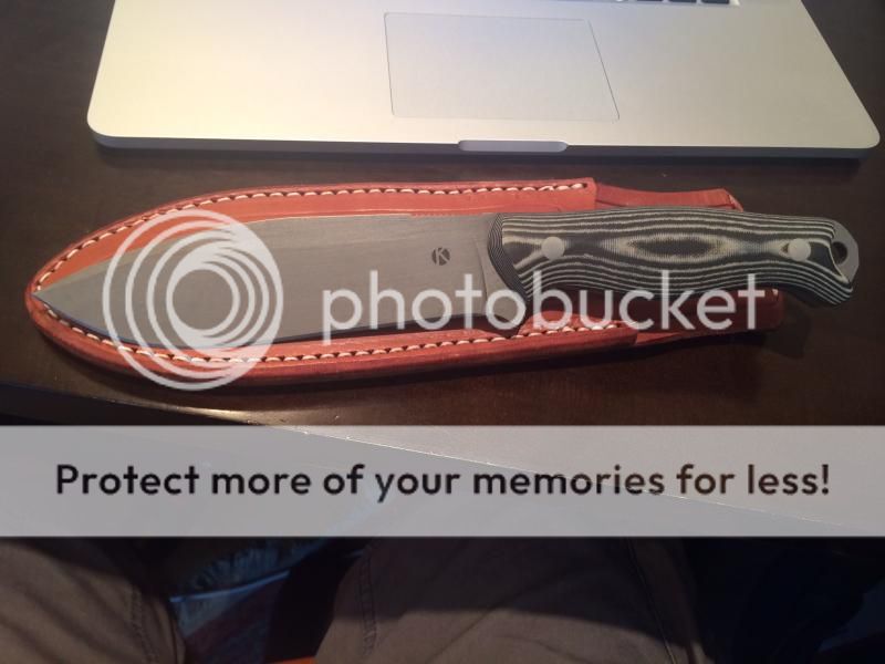 Amazingly cool camp knife, I have just turned into a light weight fanatic and use his bushcrafter instead. I have owned many Koster knives, and the way he does 3v is just amazing. This knife is unused from when I bought it. The blade has this sort of matte, wavy, scotch brite type hand finished appearance that I really like-- no shiny finishes here! This makes an awesome chopper with how thick it is, but is so sharp it will slice through anything. Comes with KSF leather friction sheath as shown.