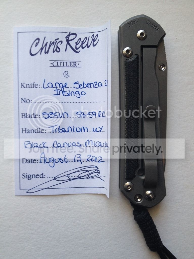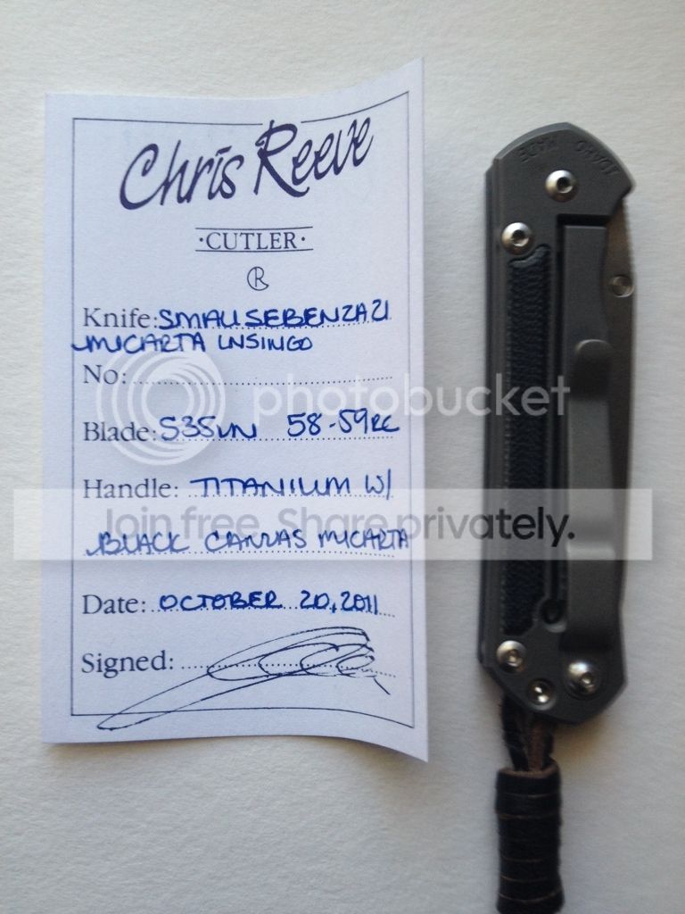 Chris Reeve Small Micarta Insingo - WITHDRAWN - S35VN Plain Edge - Knife has been used lightly and has marks on the titanium. Has never been sharpened. Includes everything that comes with new knife except the original lanyard. There is a leather lanyard tied on.