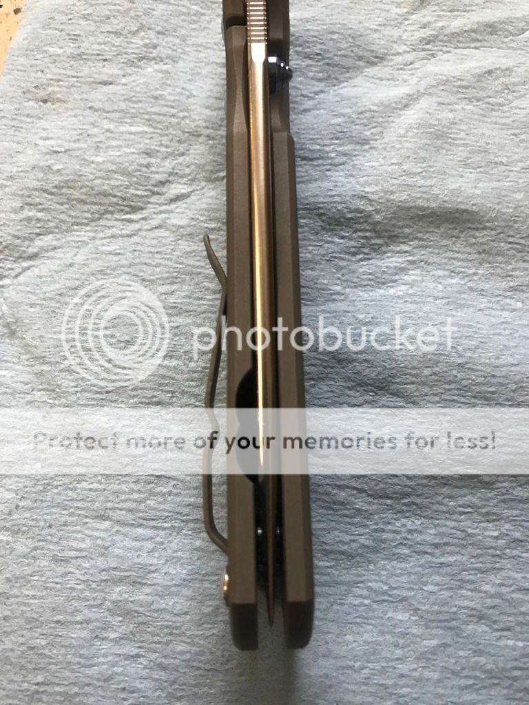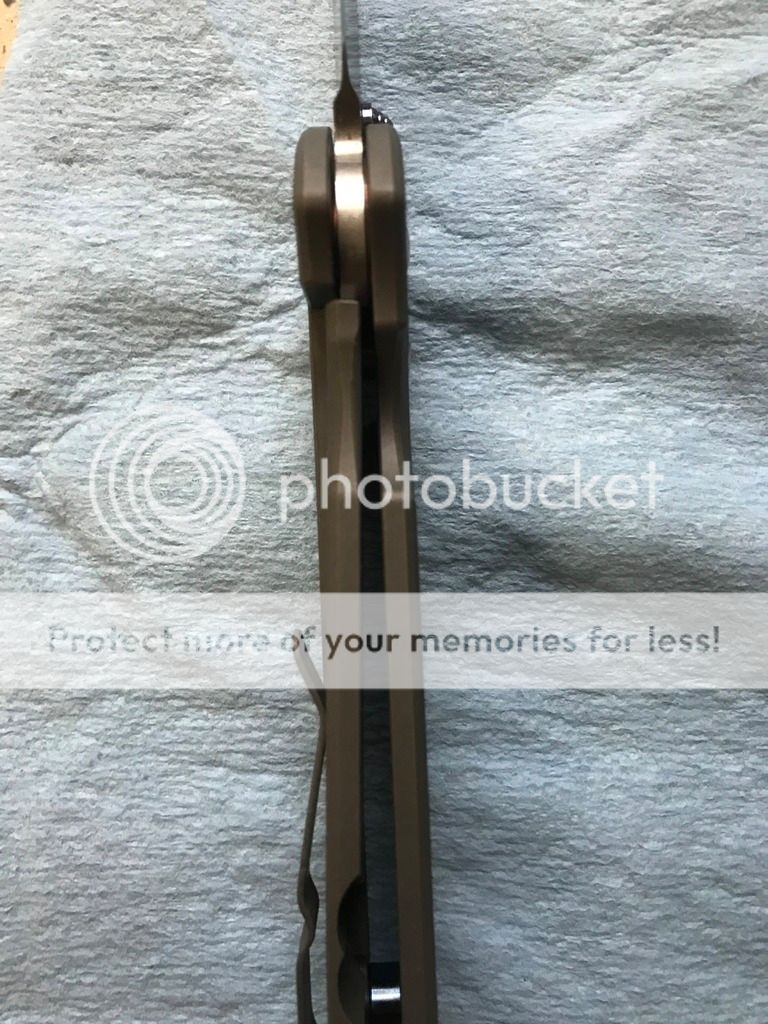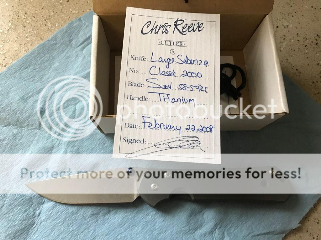 its in excellent to new condition. Appears to have the factory edge, I don't think it's ever been used or carried. Perfect centering, does have a little bit of lock stick which I think will disappear with some use. I put a little sharpie on the tang and it already seemed to get better. Typical sebenza lockup. Ever so slight wearing of the blue on the thumbstud.