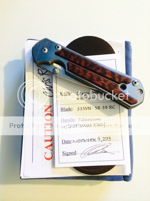 Wanting to sell my beautiful and very near new Lg Sebenza 21 with Snakewood inlays and single silver thumb lug and dual tone blade (stonewashed flats and polished hollow grind).