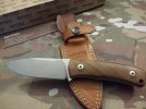 The handle is walnut and is tight around the steel. The scales have not been removed, but wiped down with linseed oil. The blade is M390 with an original edge and tip. This knife has had light carry, never sharpened or stropped.
