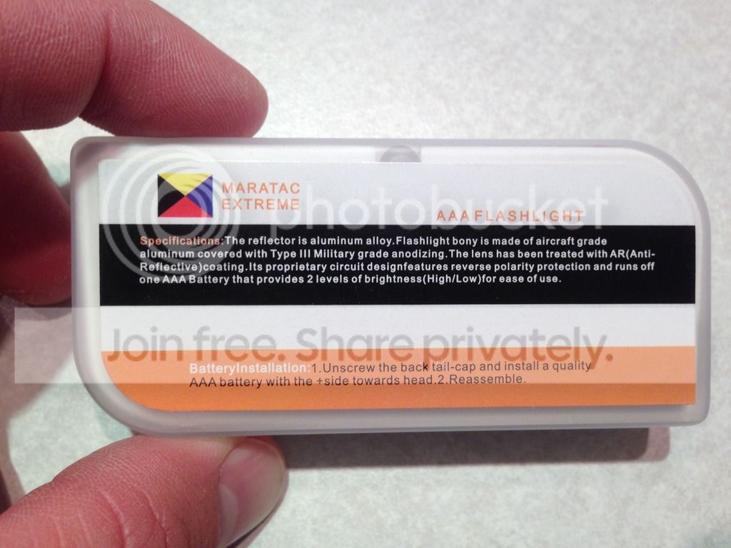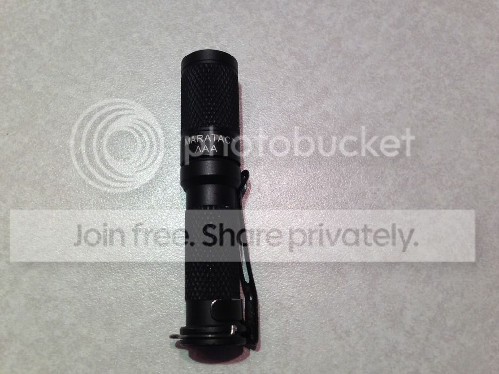 Up for sale is a Used Maratac AAA Rev3 Flashlight. This light has been used and carried by me for months. I bought it new from countycomm. It works flawlessly. Comes with the plastic case, o-rings, and paperwork from Maratac. I cannot find the GITD diffuser. Im asking SOLD Shipped CONUS PayPal.