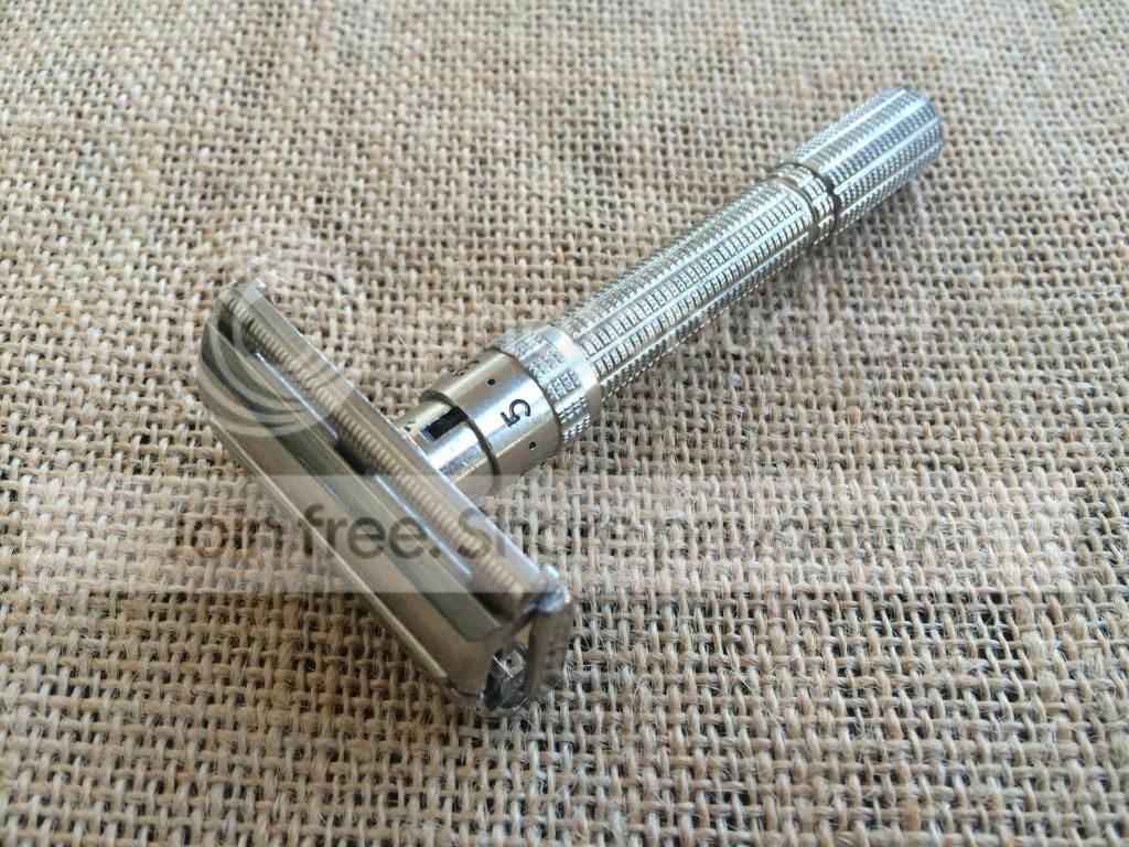 2.) Gillette Slim - Nice condition. Shows some brassing on the handle and general scratches and wear. The adjustment knob works great and clicks at each number nicely. The knob to open and close turns nicely with the last half turn as well and doors close and open great. $35