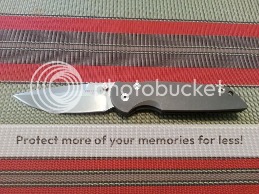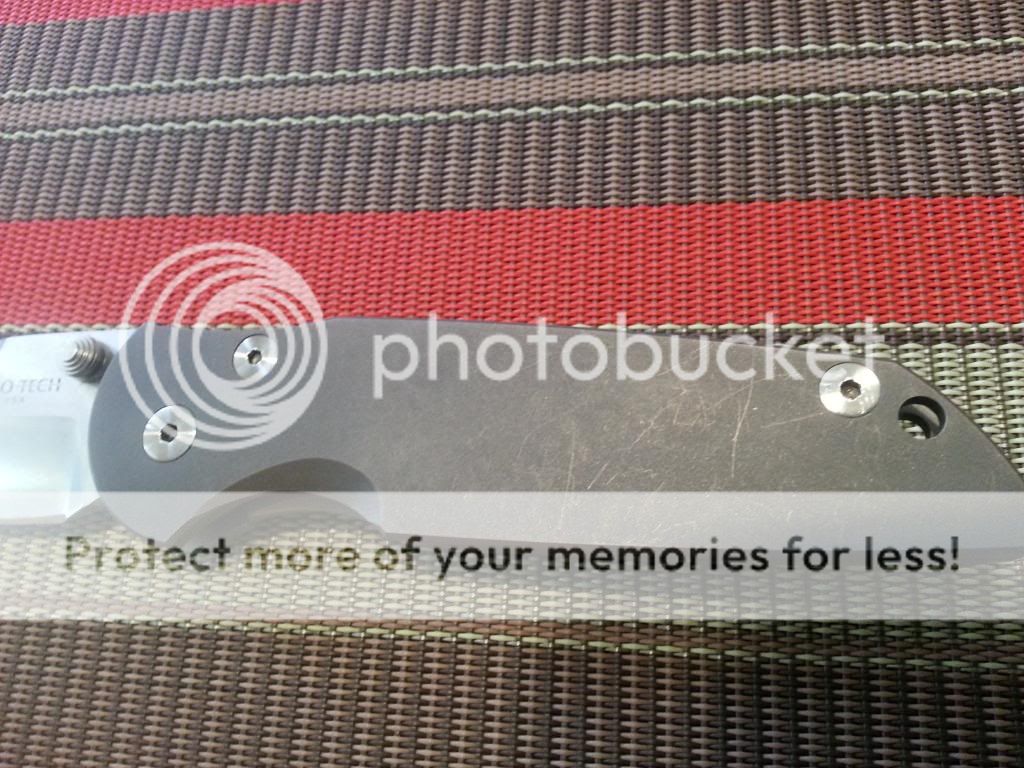2. Protech TR3 Manual Integrity. This one is a user shows light markings on the titanium scales, and some light scratches on the blade. Early lock up and solid! No blade play! The Blade is centered. No box, knife only.