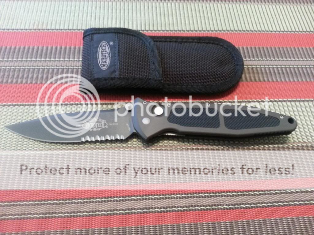 1. Microtech Socom D/A dated 06/2002, can be opened manually or automatically. Its in unused condition, never carried or sharpened, the lock bar is alittle sticky sometimes but other wise this knife is perfect.These are pretty rare these days. No box just knife and sheath.