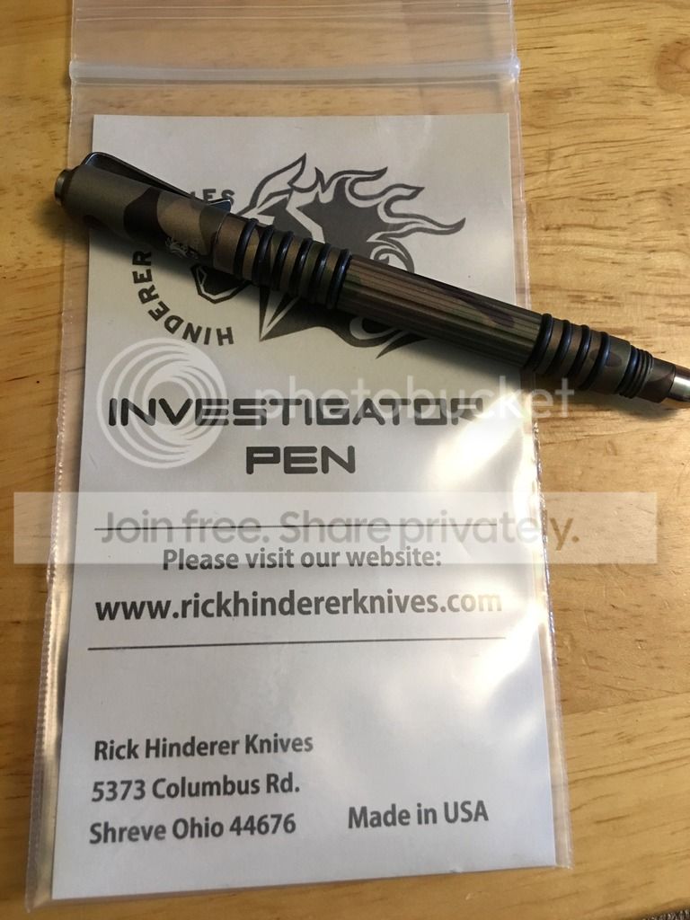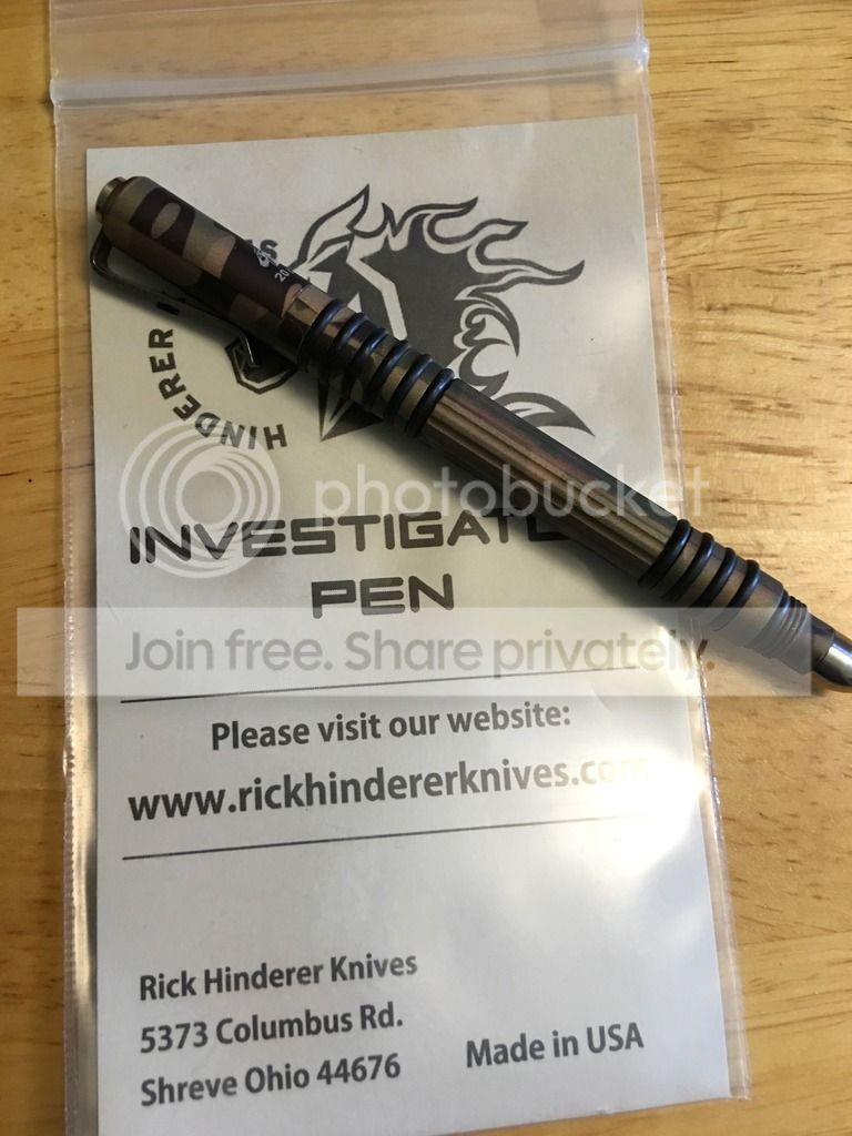 Up for sale I have a limited Hinderer pen, only 50 made. I added 5/16ths O rings for better grip. This pen was carried once or twice but shows NO signs of it at all! I am asking $100 SHIPPED OBO in the USA. Don't miss your chance to own 1 or 50 pens made!! I would also consider a trade for BilletSPIN top. Let me know what you have!
