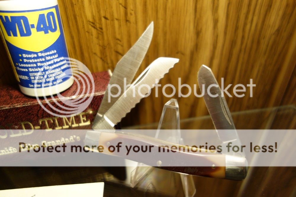 Knife is in excellent condition that has a few light patina speckles. Special edition promotional box with little WD-40 can and paperwork. Knife has a serrated sheepsfoot blade. Will sell for SOLD. Payment by money order, personal check, or paypal (I'll cover fee's). Thanks for looking.