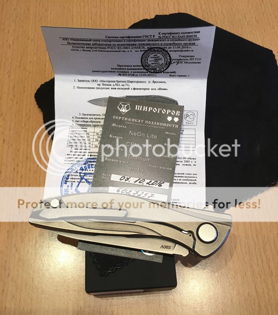 My knife has only been taken from the box for real photos. Comes with the factory box, cloth, and certificate. All great in knife - no defects. These knife lot of manual work - so they may differ in treatment.