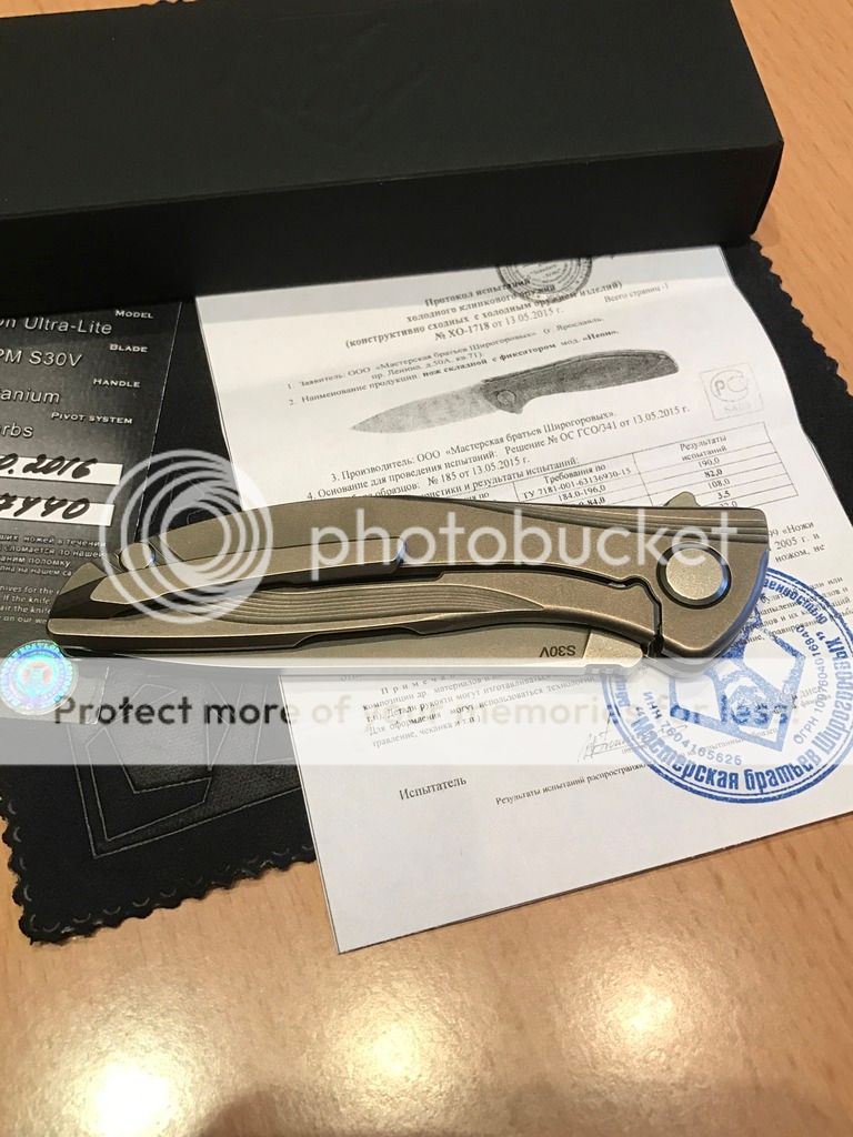 My knife has only been taken from the box for real photos. Comes with the factory box, cloth, and certificate. All great in knife - no defects. These knife lot of manual work - so they may differ in treatment.