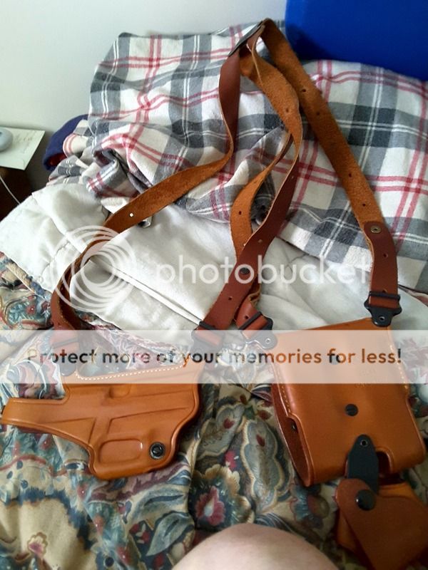 Next is a Galco Miami Classic leather shoulder holster also a P226 rail or non rail, brown with cuff case and dual mag pouches, very good condition. Asking $90 shipped.