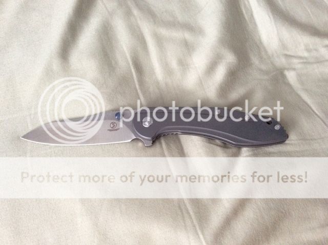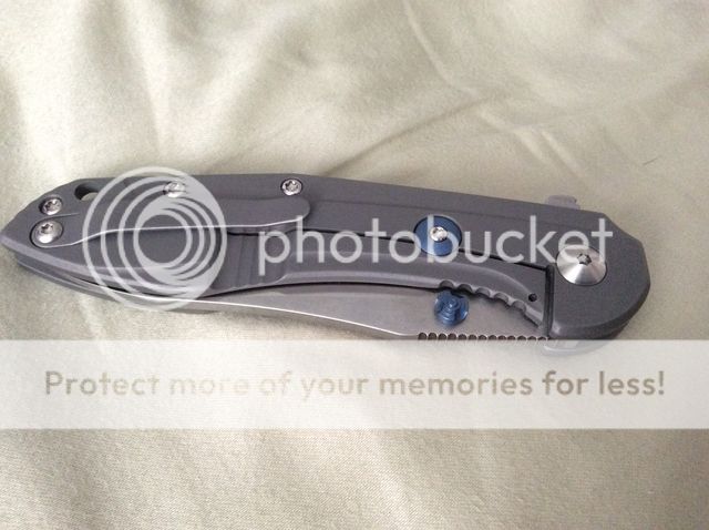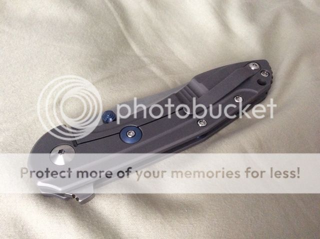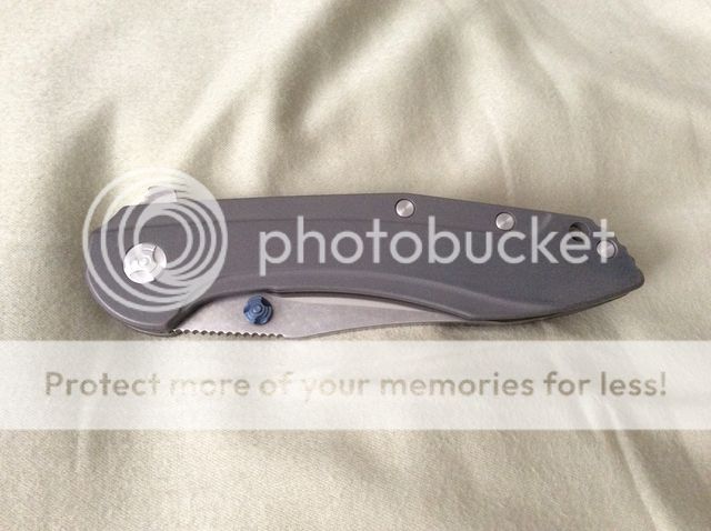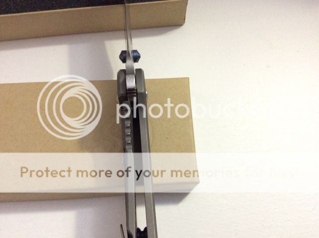 knife is perfectly centered. lock up is 100% solid. no blade play whatsoever. super smooth flipping action with the built-in bearings. never been sharpened. never cut anything. carried in the pocket less than 3 or 4 times but never used. pretty much as close to brand new as you can get.