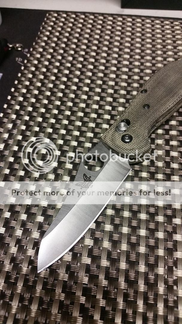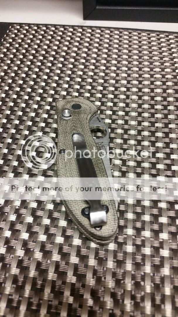 Benchmade Mini Grip with DeathGrips Micarta and orginal black scales. Has Benchmade deep carry clip, will throw in a black one as well. Sits off center to left but that can be adjusted per instructions of scales inlcuded. Has box, pouch,etc. $140