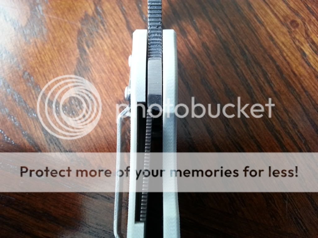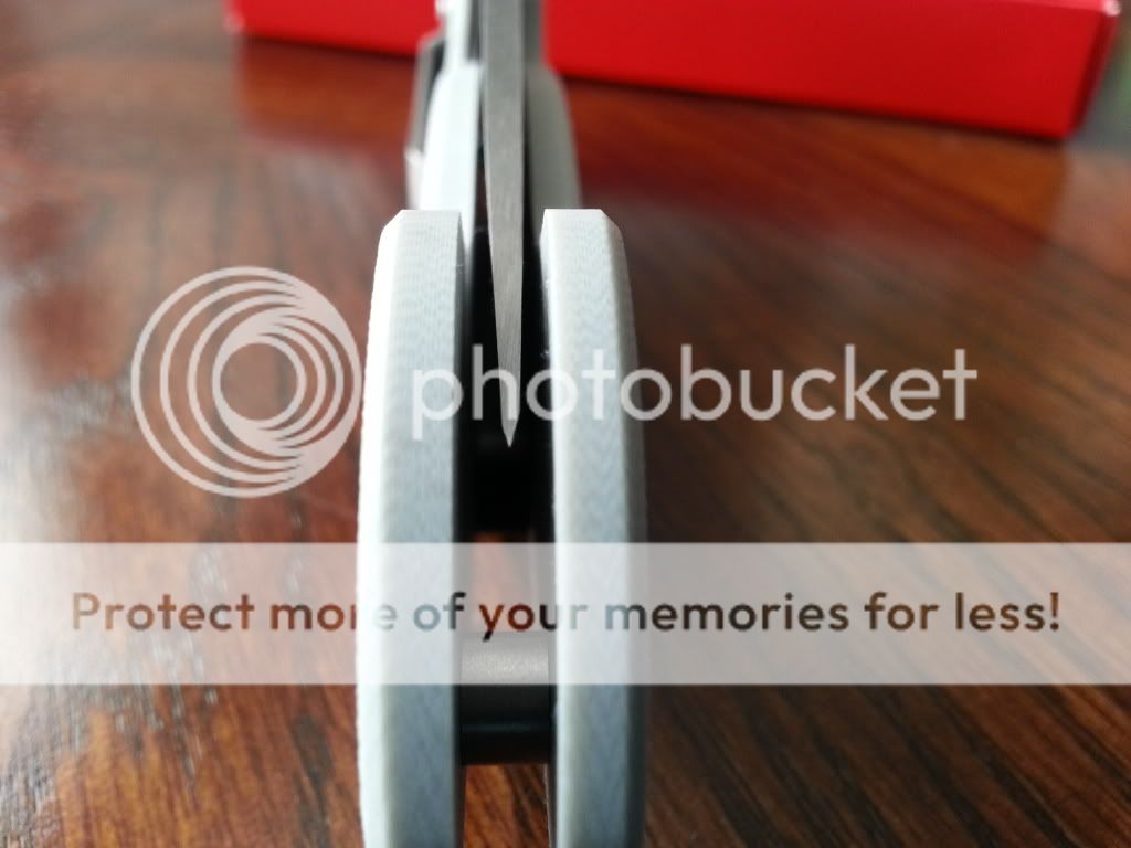 The knife is completely unused and has only been out of the box for the pictures below. Centering is slightly off but I'm fairly confident it can be centered with adjustment of the pivot and stop pin screws, which the next owner can do (I won't do it just for a better sounding description). The bevel isn't 100% symmetric, which I tried my best to capture in the pics below. Solid lockup and no blade play.
