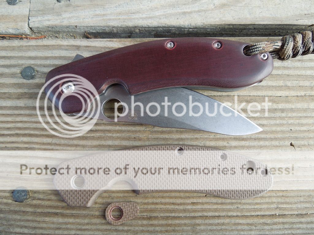 Spyderco Southard, comes with factory brown textured g-10 scales and matching LBS as well as the maroon linen scales and matching LBS as shown. also has a aftermarket deep carry titanium pocket clip as well as stock clip and box. Knife has been carried and used but well taken care of, factory edge has been maintained on a strop and is sharp. beautiful knife, asking $155 shipped.