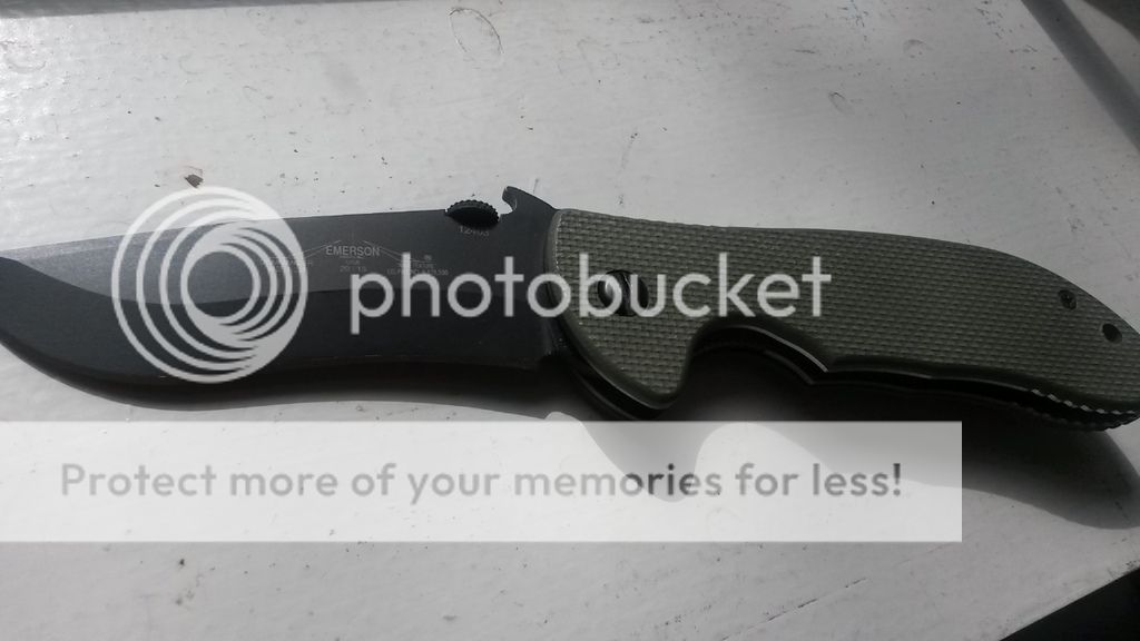 Second - Emerson Jungle Commander - 2013 Production - I'm owner number 2 - Smooth to open, original factory edge, solid lockup, etc. - everything you want from a Commander! Blade has a little wear in the finish on the wave and the spine of the blade from being carried, but not from use. Pocket clip shows some "snail trails" as well. But nothing excessive. would make a great user. Its just a bit big for me and I won't use it the way it deserves to be used. I'd like $165