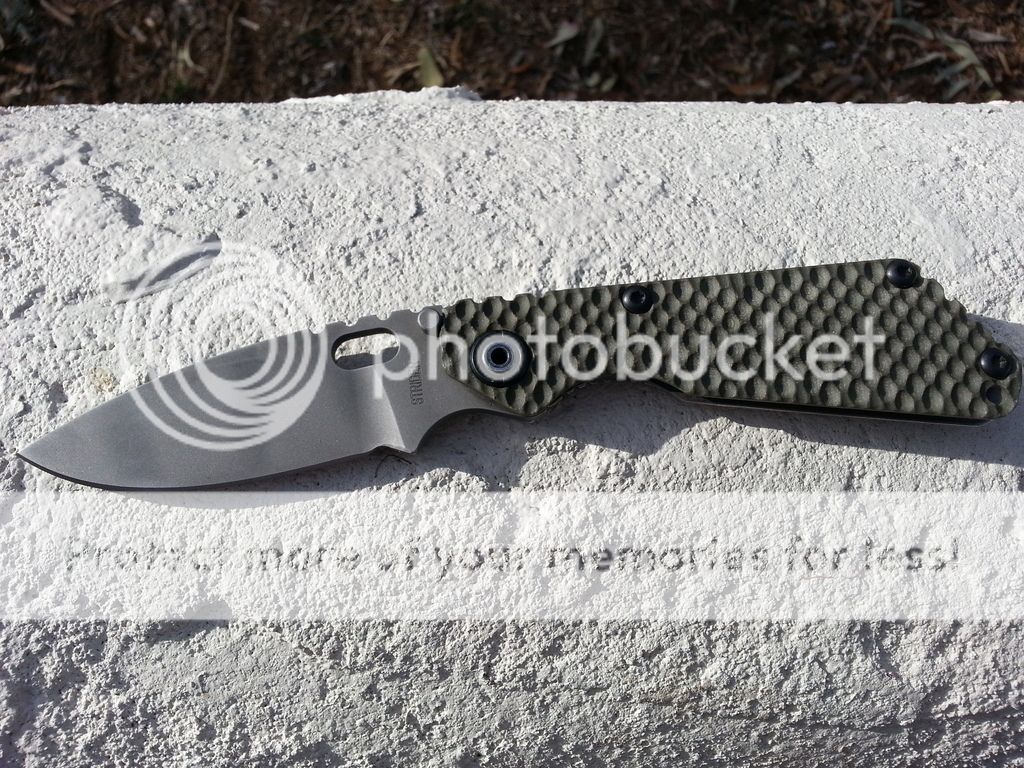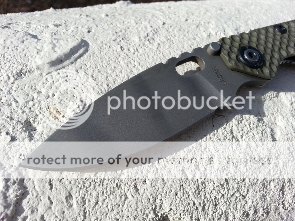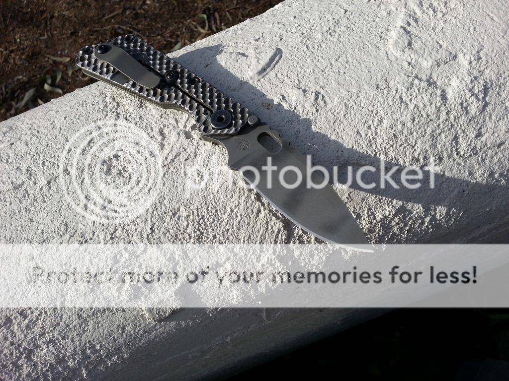 This was my go to edc knife years ago. Last time carried was when i drove to strider knives and they gave the knife a full spa treatment, re bead blasted the blade, added a new thumbstud for early nice lockup. Perfectly centered blade and factory sharp. Been sitting in safe ever since its spa treatment. This is the dual gunner grip concealed carry version. Super smooth opens very nice. Only thing wrong with knife is a sharpening scrape on choil prior to its spa treatment which can be seen in photos. $OLD