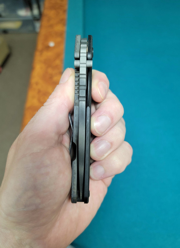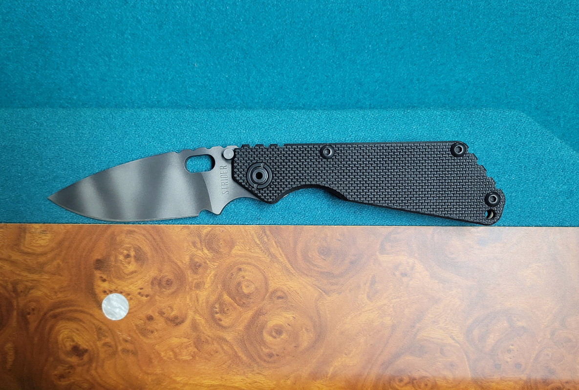 Today unfortunately, I have to part with a favorite from my collection the Mic Strider SNG. Purchased new 5-6 years ago the knife has never been carried, sharpened or used in any way and was strictly a piece for my collection. The knife features a "Tiger Stripe" finish on the blade with G10 handles on one side and Strider's signature flamed striped finish on the titanium side. Thank you for looking and if there are any questions don't hesitate to contact me.