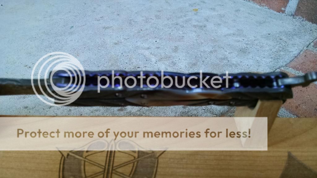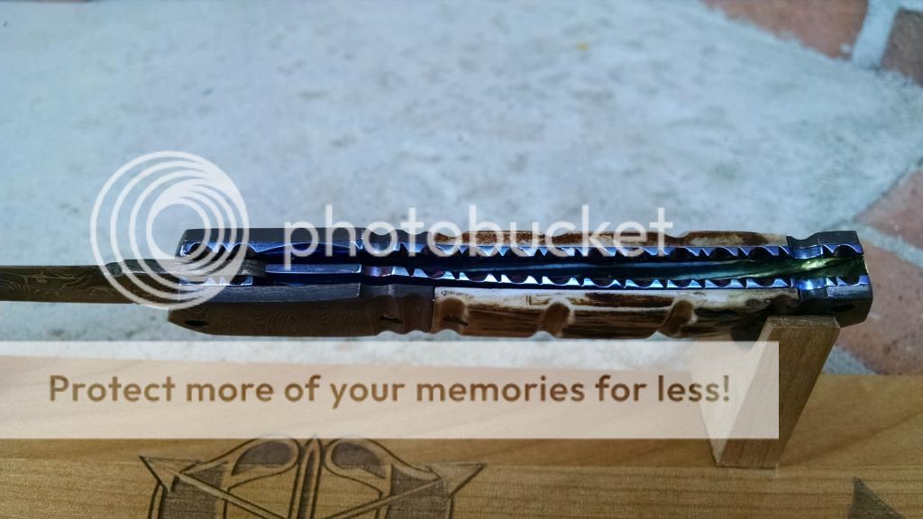 Ok......another Beautiful Bali. This Incredibly beautiful Blade Again is Robert Calcinor. The blade is a beautiful blue Damascus. OAL is 7.5 inches. The handle is and Incredible Carved Titanium with a partially peened finish. A real bargain at $1350.00 usd OBO