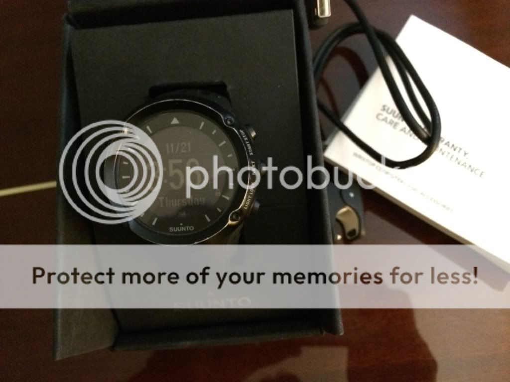 Up for sale is my Suunto Ambit. The software has been updated and is running perfectly. It is used but not abused. Signs of wear on the aluminum bezel, which is typical for Ambit, since the finish doesn't hold that long on aluminum. Some sign of wear on case but nothing substantial. The battery is running great and gets 4-5 days of charge without using the compass and other battery draining functions. This sale does not include the heart rate monitoring strap. It will include the retail box shown, papers and charging/sync cable. Yours for $OLD OBO, shipped to CONUS.