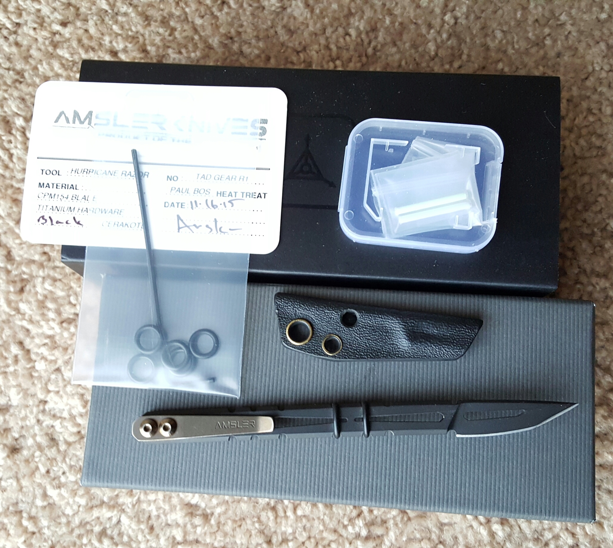 FS: Amsler Hurricane Razor TAD edition - CPM-154, black cerakote w/ bronze anodized hardware - includes original packaging from TAD