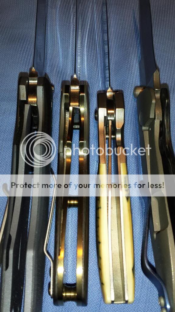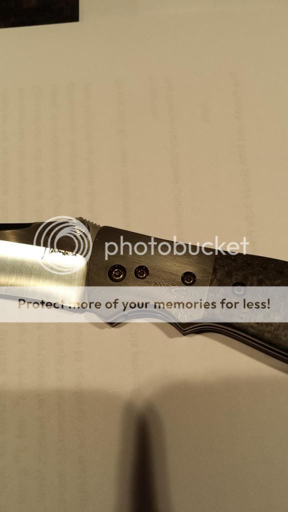 3. Mint Tom Krein Alpha with carbon fiber weave. Dual studs, acid washed 154 blade. Blasted tumbled frame. Recurve dagger grind. Blue ano Ti backspacer and clip