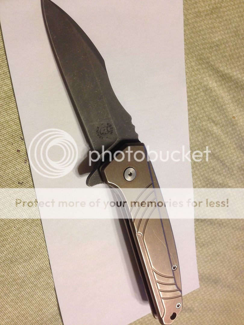 Work done by Josh is a Bronze Ano on the Ti slabs, Acid Etch on the blade and Finished off with a very nice Stone wash.