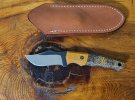 1. Fletcher Knives - DLUX - Tangerine Bolster - Orange/camo burlatex handle - OAL 7 3/8" - Blade 2 3/4" x .110 in 01 Steel - Tapered Tang and file worked spine on handle with filing - MINT - New, Unused, Never carried - Comes with Magnetic flap leather pocket sheath - Asking $450 OBO