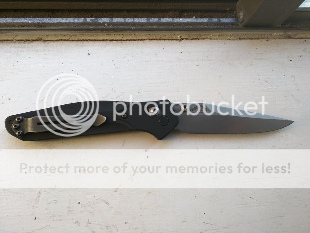 I'd like to sell my used Benchmade 943 for $100. It's been used and sharpened. The tip is slightly rounded as shown in photos. The scales have 2 small dings, the more notable of which is right above the pocket clip. An arrowhead clip is installed. Box included but no black bag.