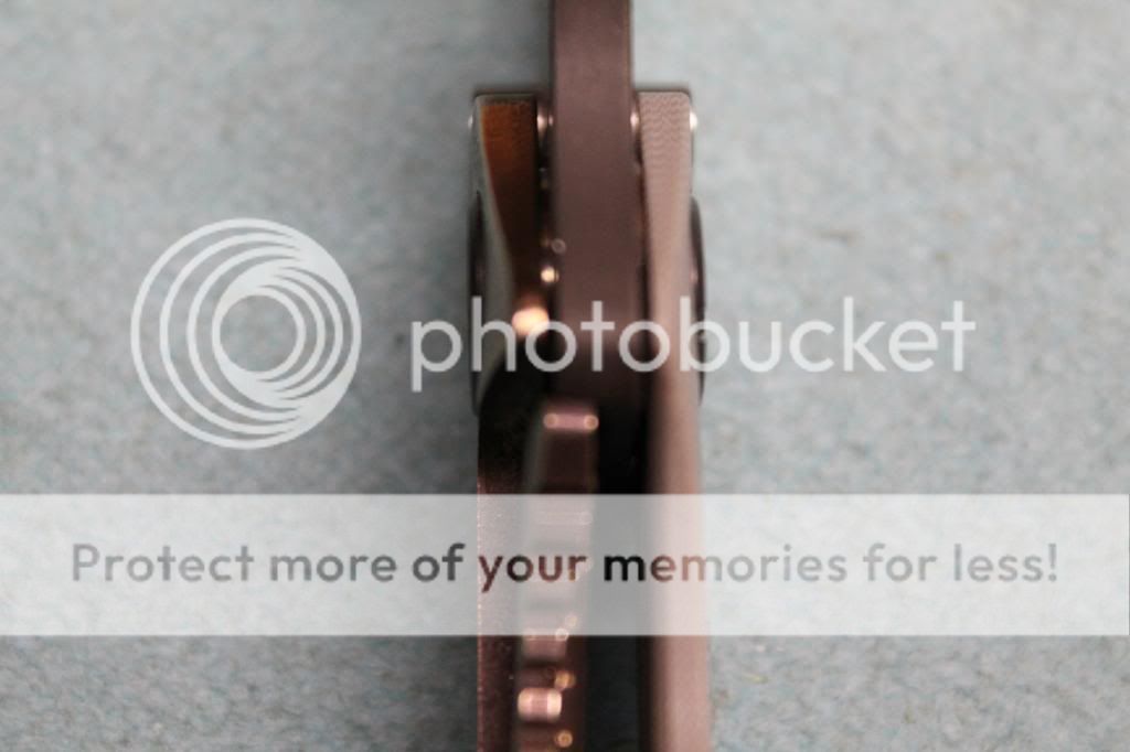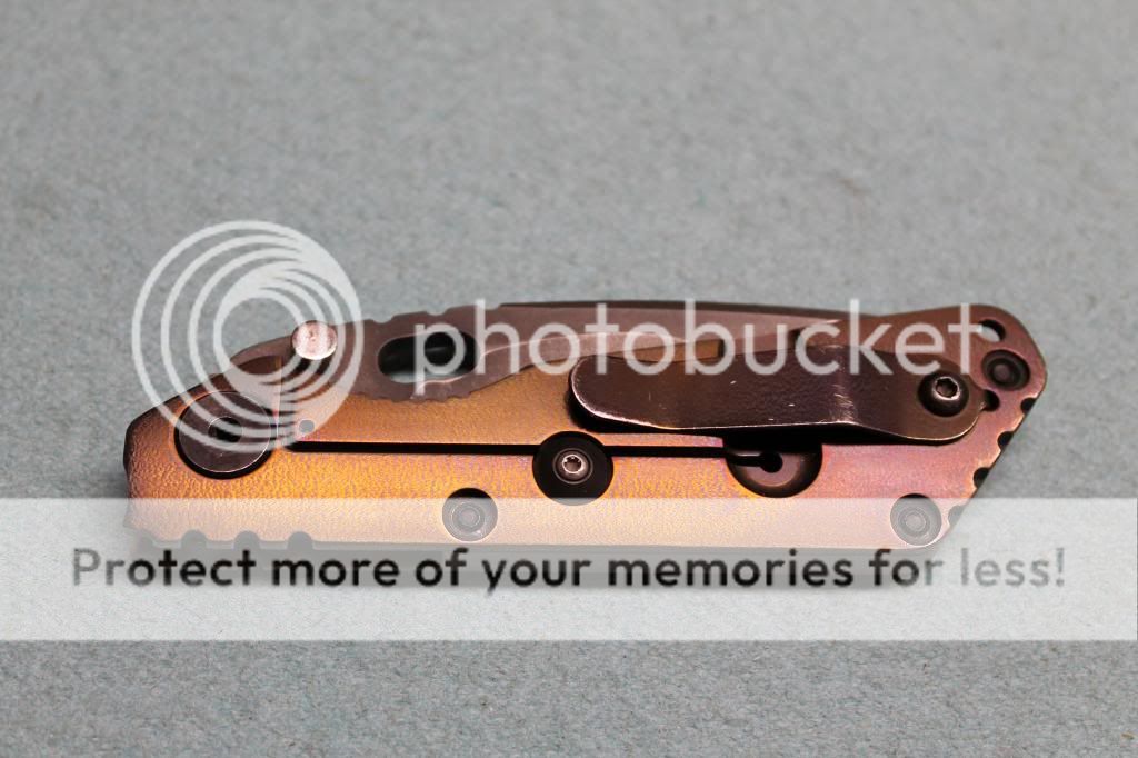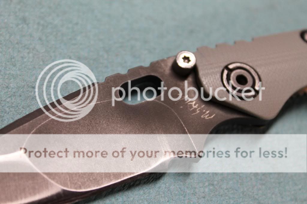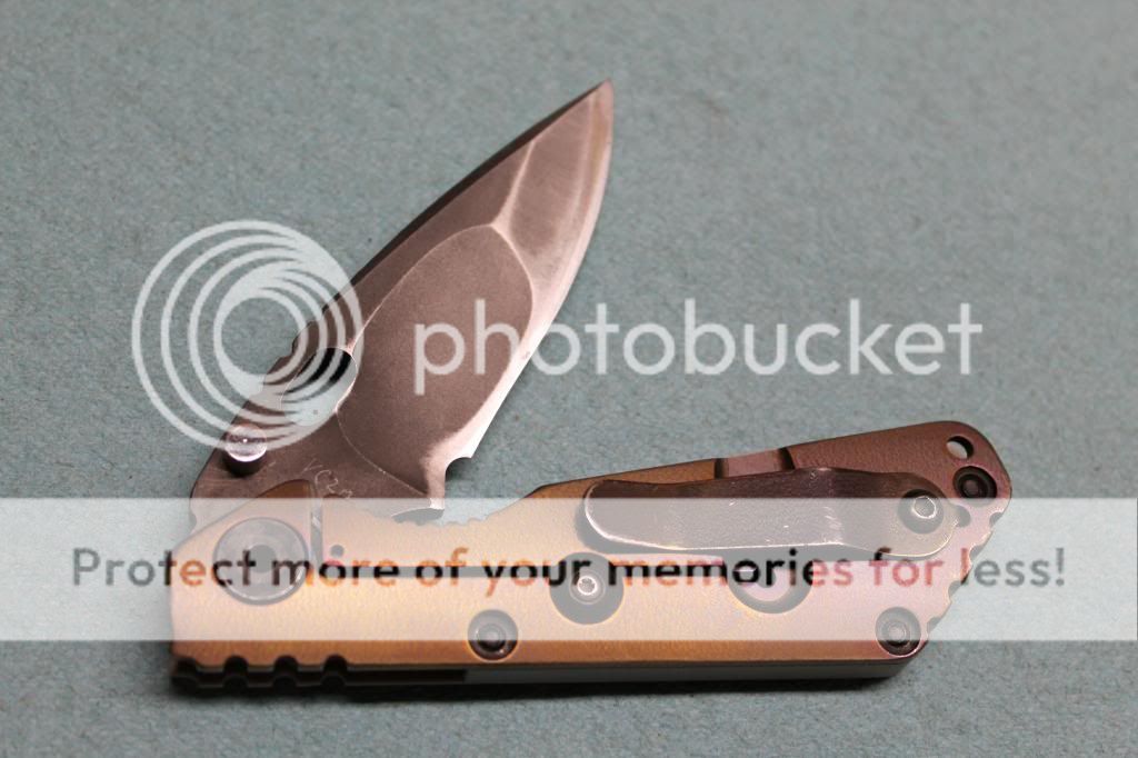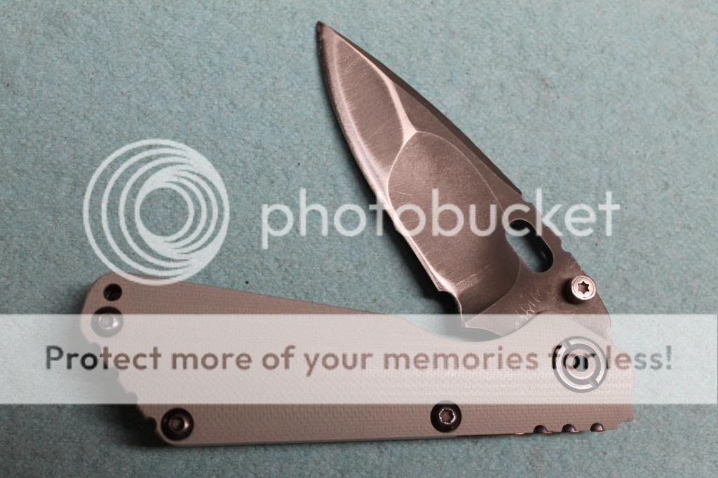 I'm not sure how long this will run. Probably until I regain sanity and put this back in my pocket. She's been sent off to Strider once for a thumbstud that would fall through. What you see if Striders official fix. I've never seen another like it. Pretty, right? Anywho I've used her hard, but properly. She has a good edge, but those with a WE would be able to get something hair shaving. Lockup is tight, no looseness which is cool. I usually marine tuf cloth the blade every week or so, and every few months I completely disassemble to clean out and re-lube the pivot workings.