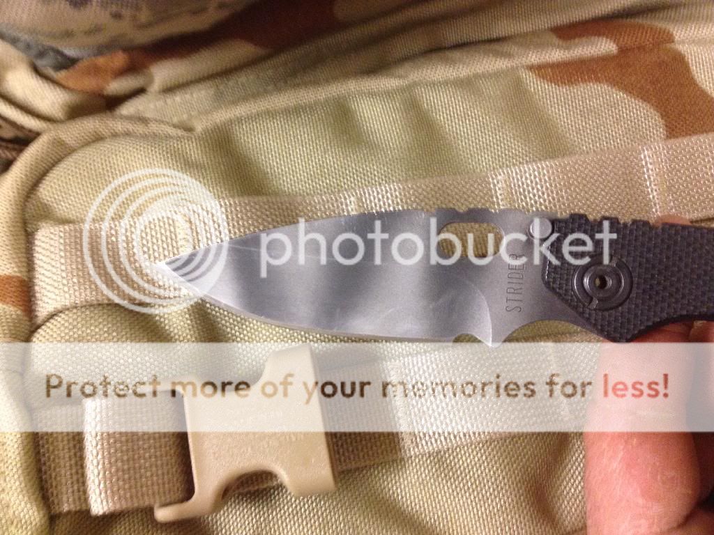 I had this one up for trade, but ended up buying the knife I wanted to this one needs to go. It has been carried an sharpened, just not abused. The pictures can show better than I can tell, but I have to mention that there is a small amount of up and down play. Nothing that bothered me but Strider can fix this. I'm asking $SOLD
