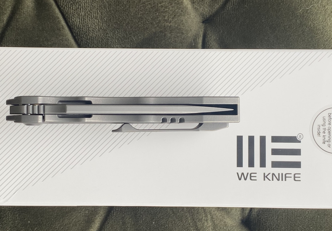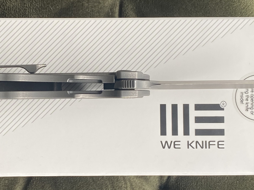 Never carried or used, hasn’t cut a thing. Strong detent fires like a rocket, locks up extremely solid with zero play, blade centers. Just a perfect example from We Knives. Includes all packaging and paperwork as new.