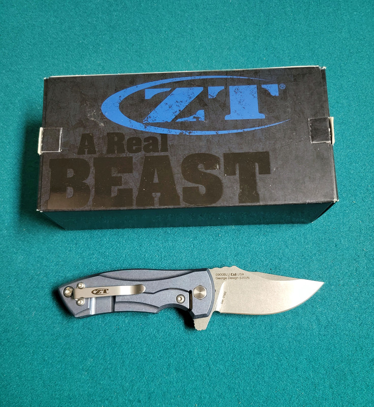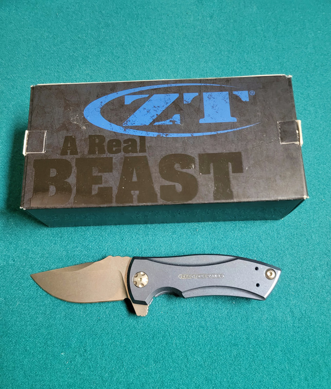 Hello, up for your consideration is this now discontinued beauty from my personal collection. The knife is new never having been carried, sharpened or used in any way. She is perfectly centered with zero blade play. The knife comes with the original box and a ZT leaflet that was inside the box. Thank you for looking and if there are any additional questions don't hesitate to contact me. Thank you.