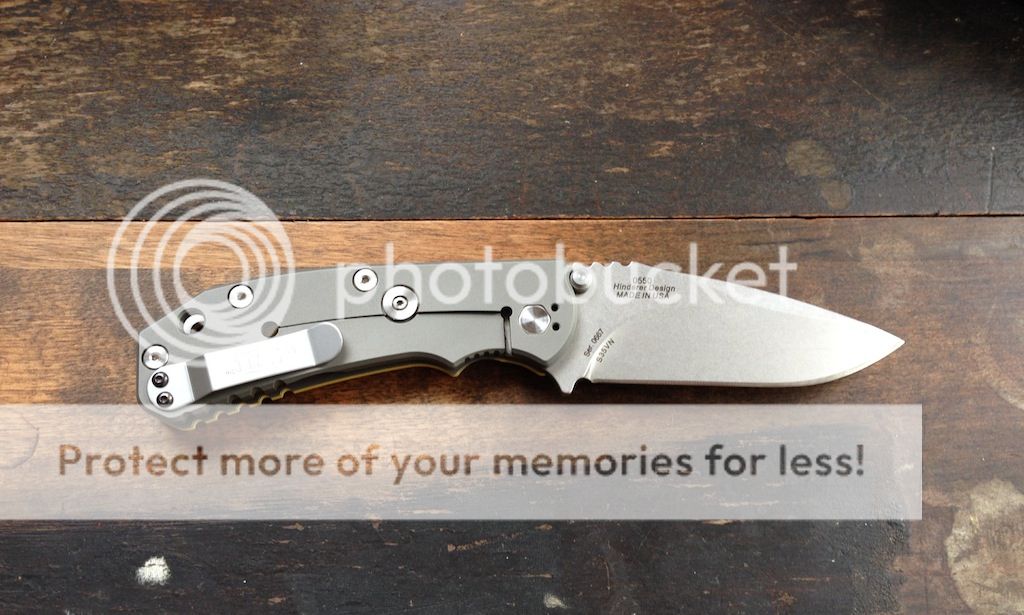 Knife was carried briefly but looks brand new. Has original edge, which is still sharp, centered blade and early lock-up. Only flaw is a pair of scuffs on the inside of the titanium scale (from slipping when changing scales), which not noticeable when the knife is assembled.