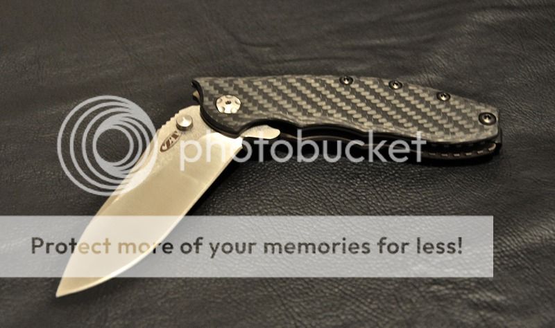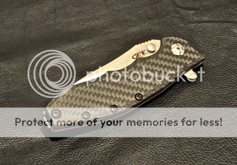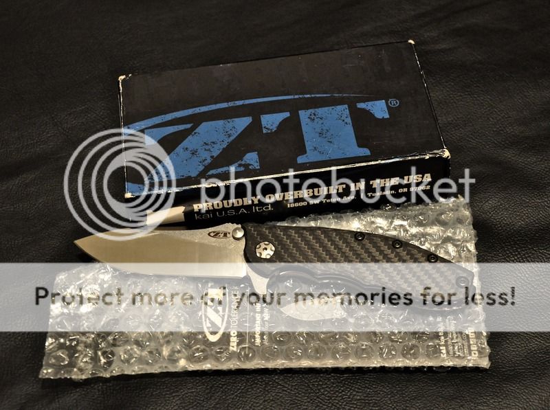 I just received this ZT 0562CF but found one with blue anodizing that I picked up. I wont need two so this one is up for sale. Its indistinguishable from being brand new but it has been flipped a few times, I do not believe it has ever been carried.