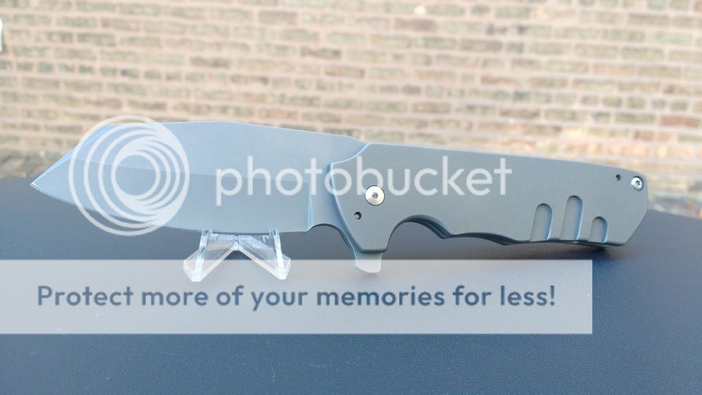 Excellent to near mint overall condition. This knife has seen limited carry, blade shows no use. CPM 154 blade is centered. No nicks, chips or rolls on edge. The handles are in excellent shape. The stone washed finish really hides any signs of use. There is one slightly more significant superficial hairline scratch on the clip. I noticed it while inspecting the knife under magnification, it's not visible in my pic. Otherwise, it's barely noticeable unless held in direct light at certain angles. However, I'm noting it for full disclosure. All hardware is in good shape, nothing molested or stripped. No blade play in any direction. No lock stick. Solid lock up. Blade flips with authority without any wrist action. No functional issues. It comes with Certificate of Authenticity dated 7/15/2014 and pouch. Dustin Snyder customs typically sell for $550 and up on the secondary market. This knife originally sold for $700.