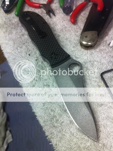 I just got this back last week from BF custom service provider Maprik. He did an extremely nice acid etch and stonewash of my blade and liners and put a razor sharp edge on it, but I've decided for this specific knife, the satin look is more my taste.