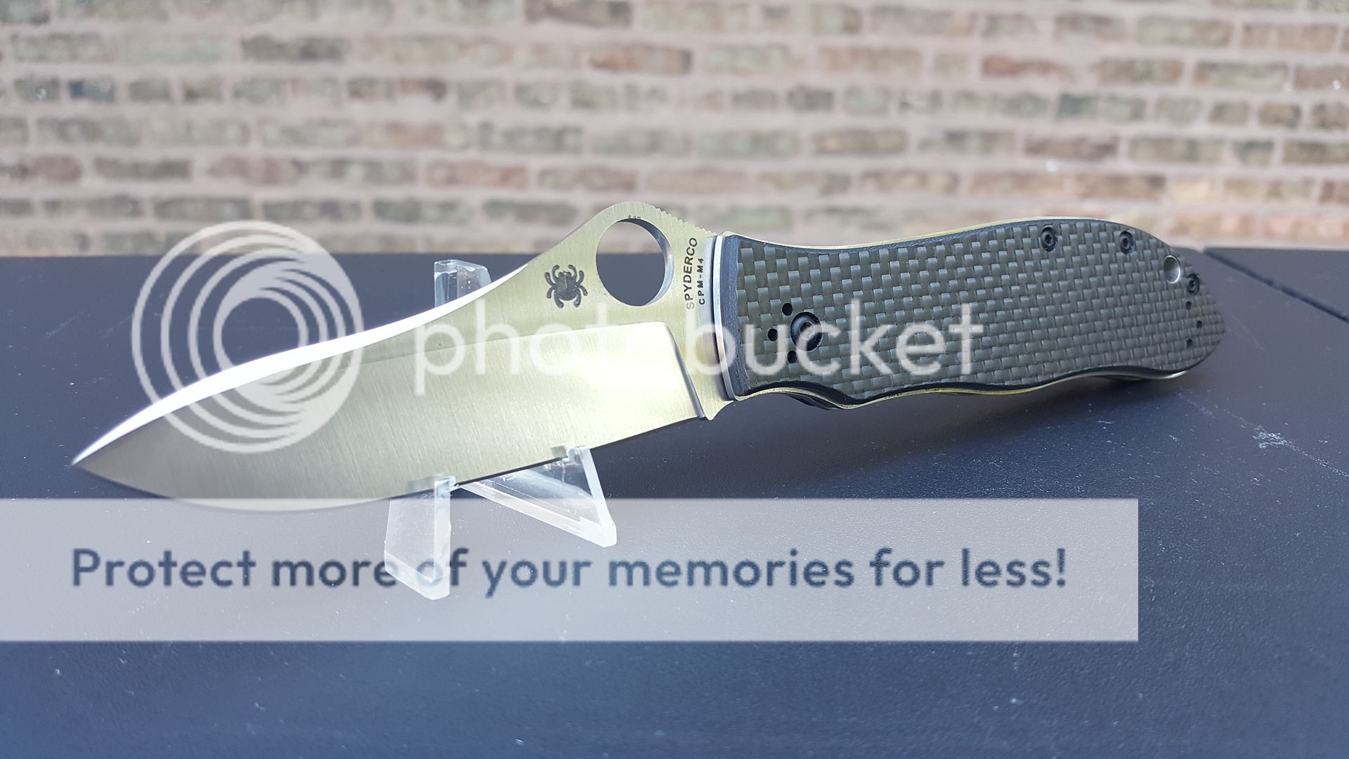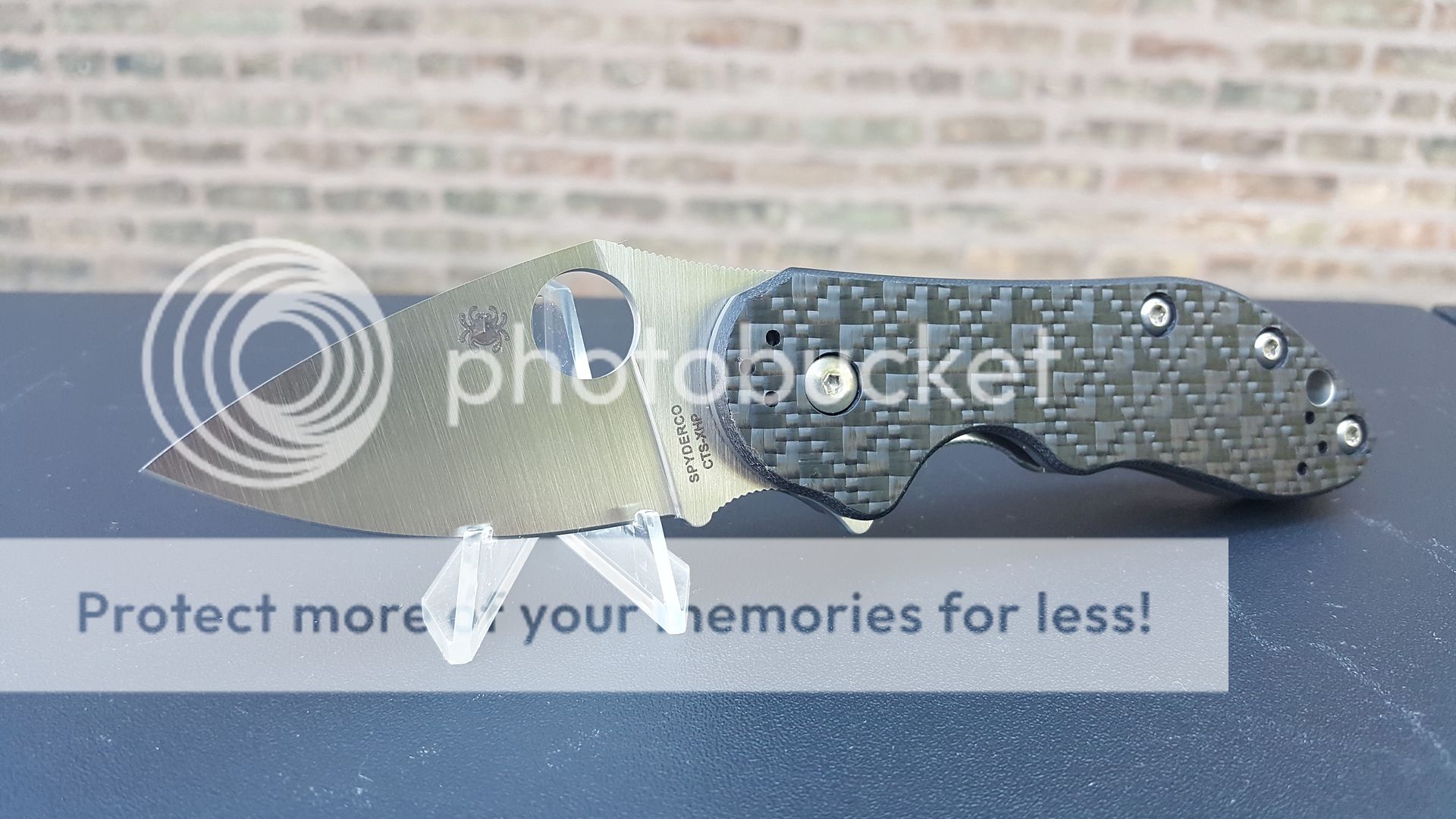 Near mint to mint overall condition. CTS-XHP blade is perfectly centered. Under magnification, I can see a few superficial hairline surface scratches. My camera can't pick them up. No play in any direction. Zero lock stick. No nicks, chips or rolls on original Spyderco edge. Carbon fiber presentation scale and titanium lock side are in same condition as when knife left Spyderco. Same for hardware. The "blemishes" that you see on pocket clip are from light reflection. They are not there in "real life". Blade flips out smoothly with very nice action. Comes with original Spyderco box, Dice literature and bubble wrap. Original MSRP $320.