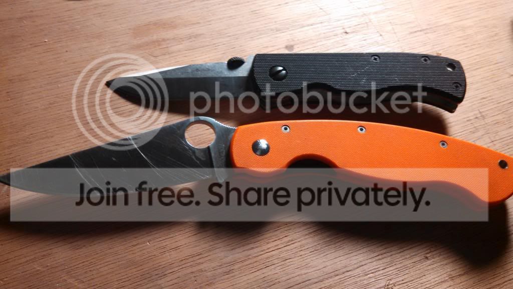 Spyderco Military, orange handle, user, lots of scratches on the blade. GONE