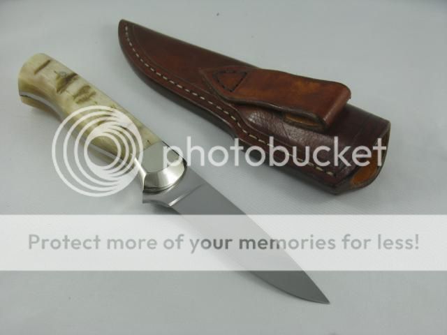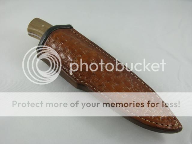 Sheath is handed made from dyed and tooled 8-9oz leather and completely liner with soft black pig skin.