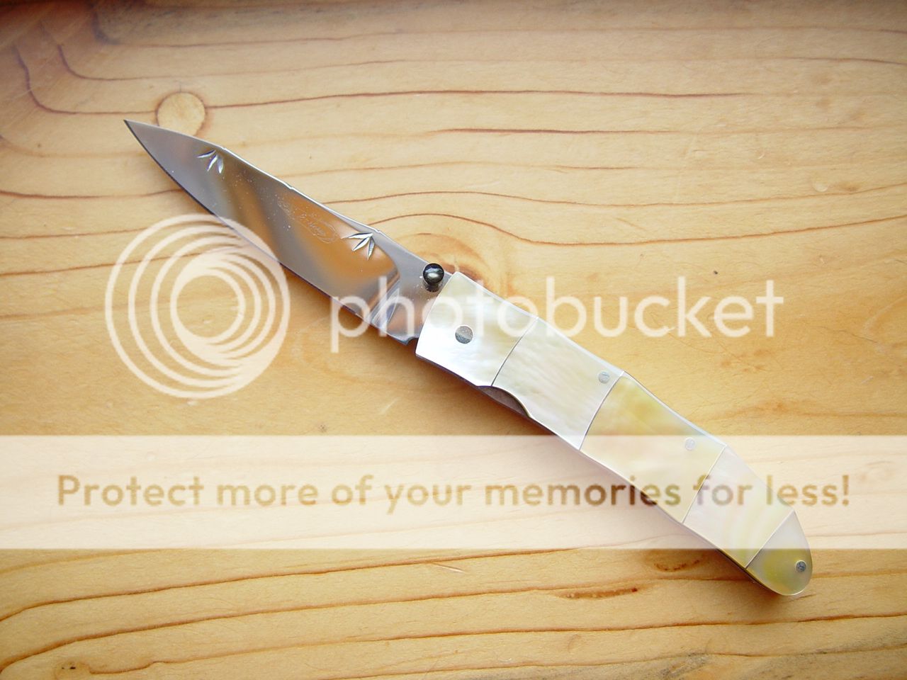 A Koji Hara Gentleman's Folder with gold lip mother of pearl, its a smaller knife. A fine example of Koji's work, attention to detail is incredible!!!! Blade is 2.5" and overall is a tad under 6", $800