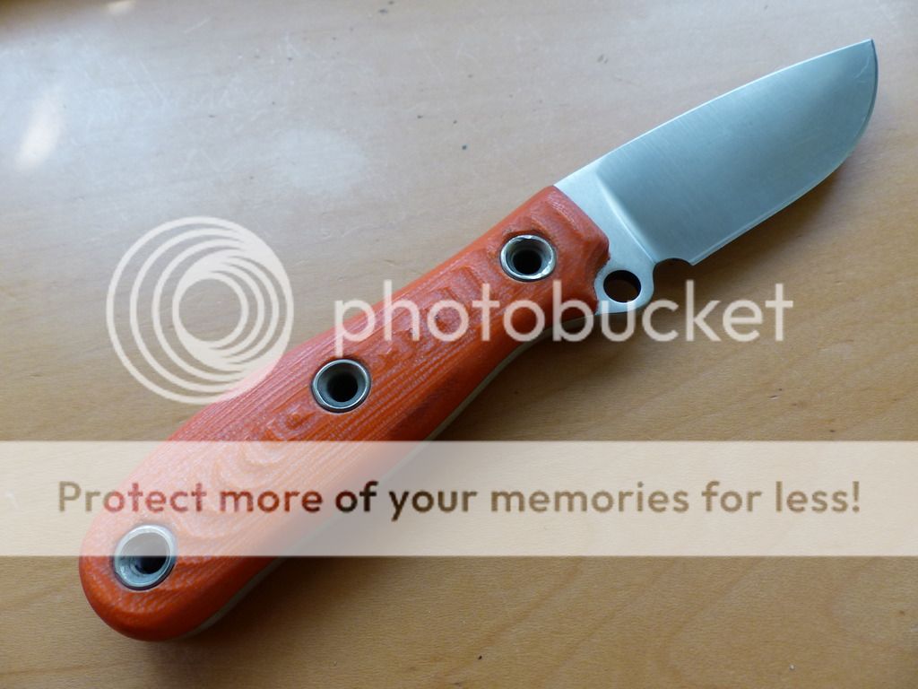 Hardly used for cutting, but the handle has some good marks. The handle tubes were sticking up when I got it and like a dummy, I tried to hammer them down a little. The handle also has some sheath marks and one dent. It's used and sold as is. The blade is clean. The cutting edge has been touched up with a fine stone a couple of times.