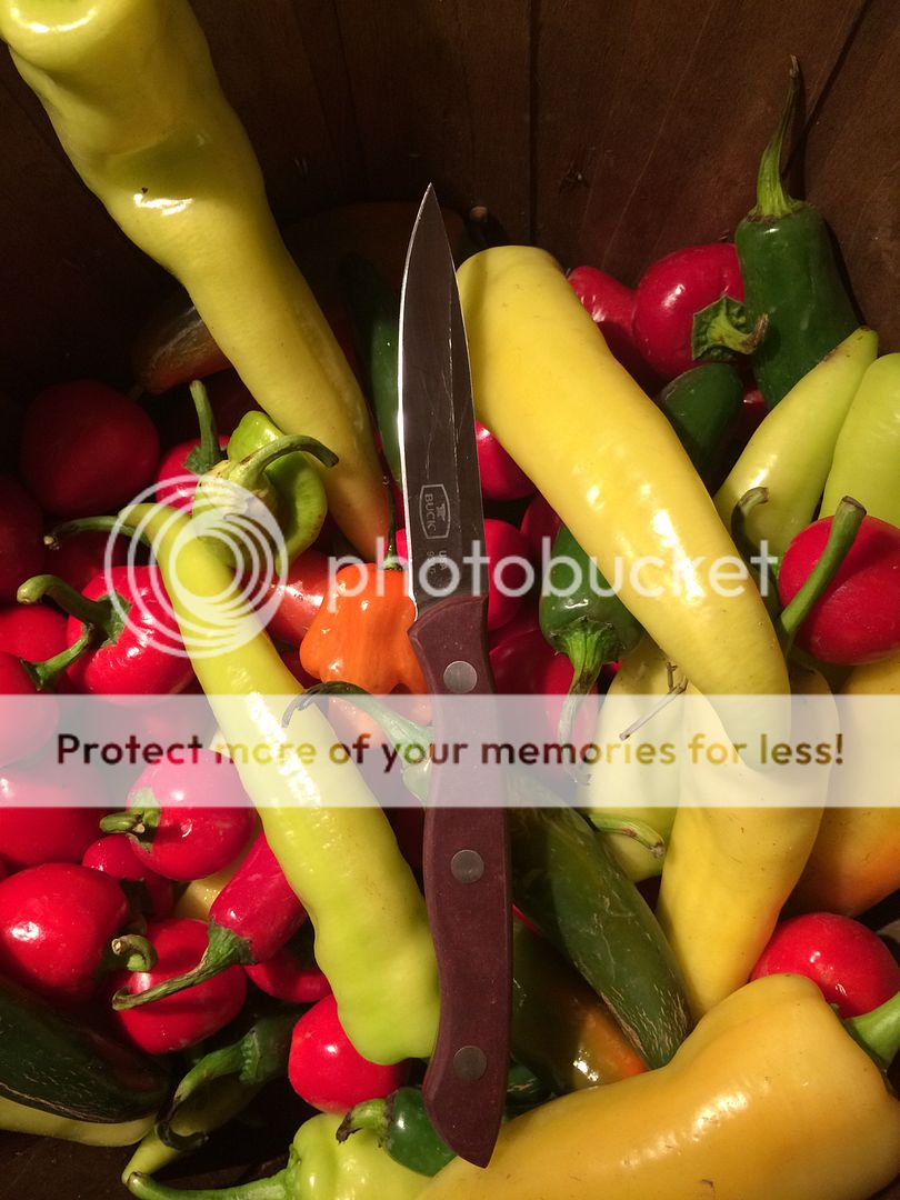 My Buck 450 is my gardening knife and as such has sawn through many tough weeds, roots, or small trees. Today it harvested some gourds. When it was new it was covered with black anti-slip with only the word "Buck" showing through in red. The black rubber was not as tough as the blade and slowly wore off. The red plastic frame has not loosened up at all and is not slippery, it feels good in the hand. The blade has been sharpened a lot - you cannot avoid hitting rocks when you do this type of work, repeated sharpening has removed some of the belly over the years. (My belly has grown over that same period.)