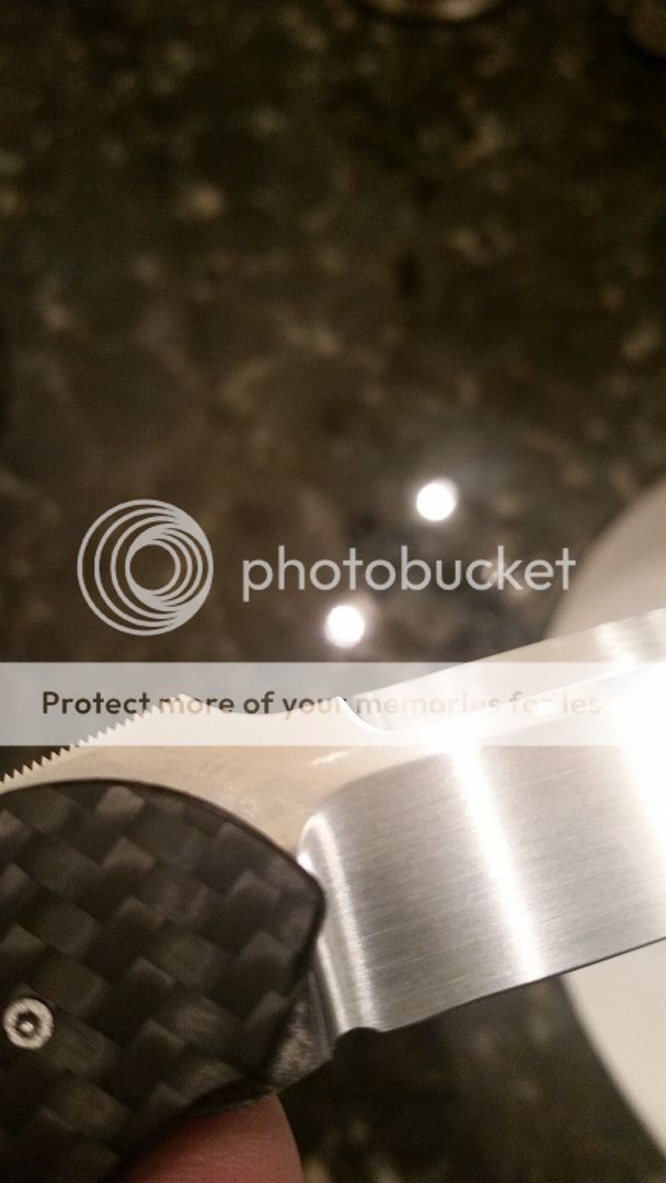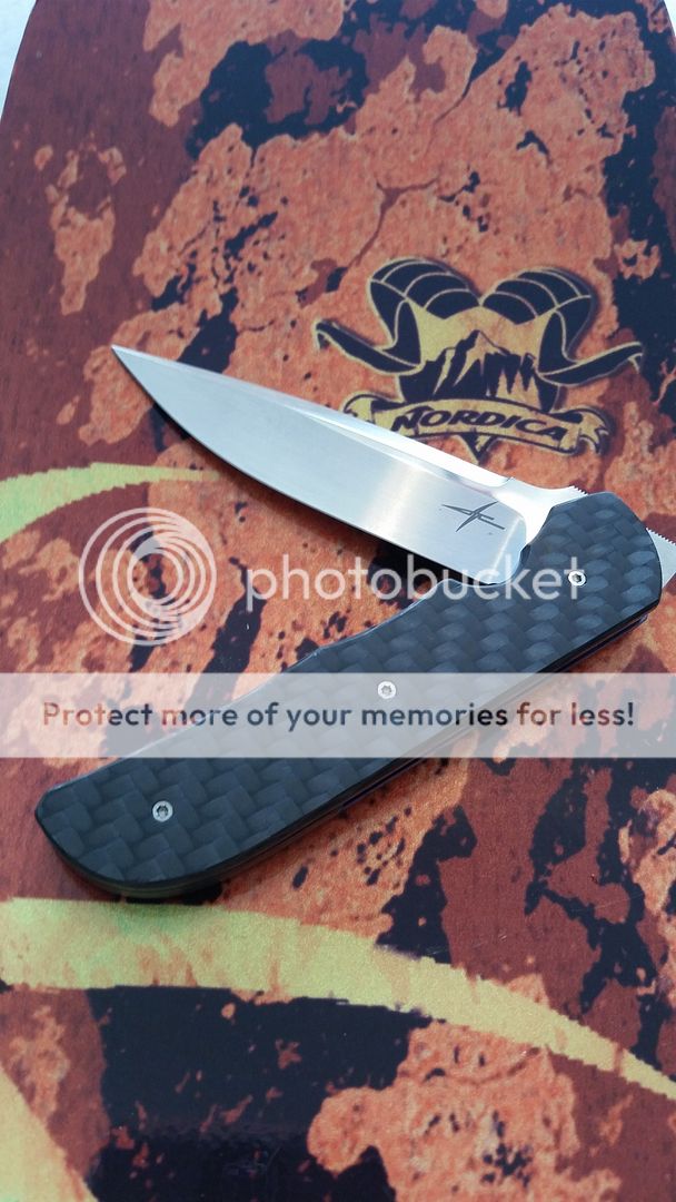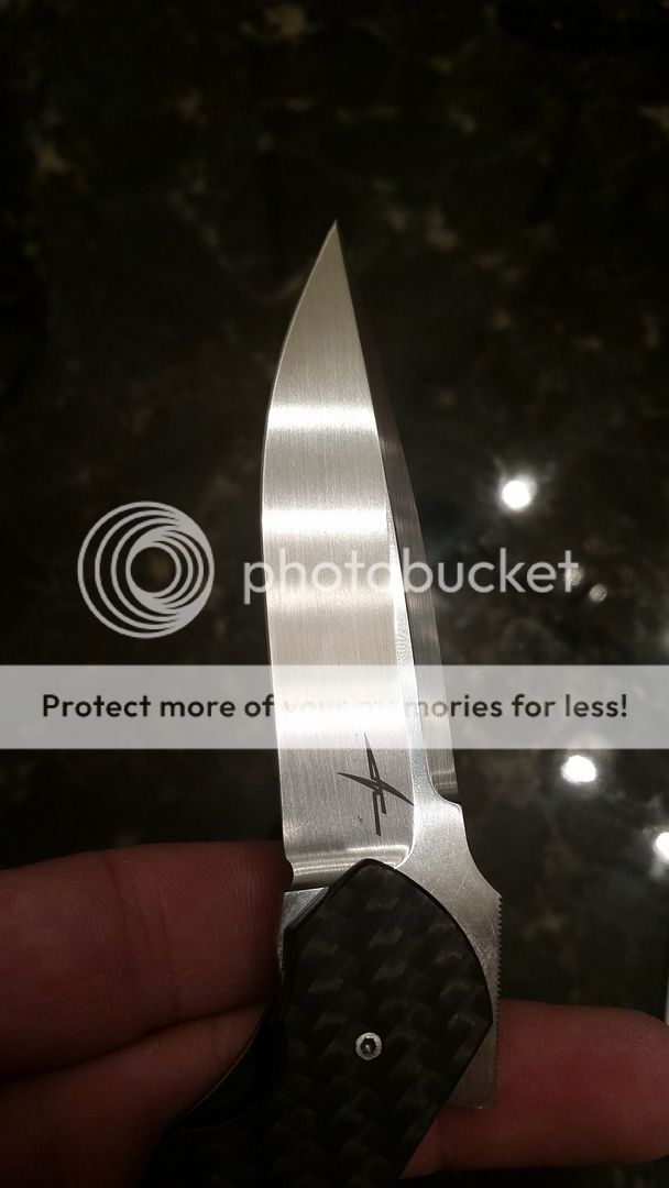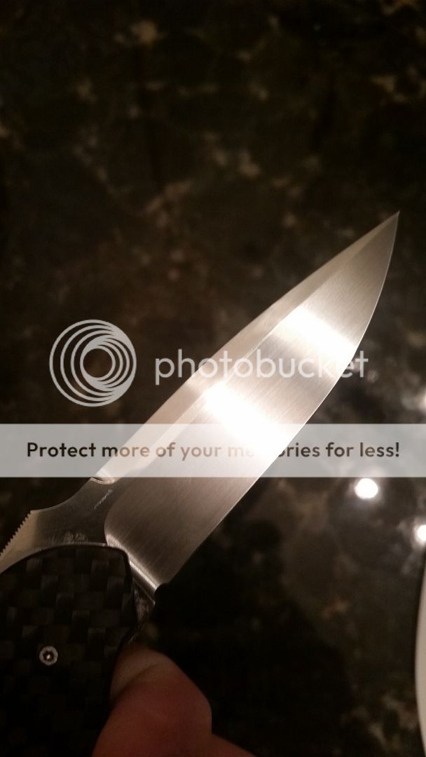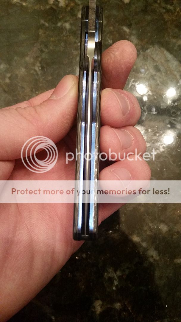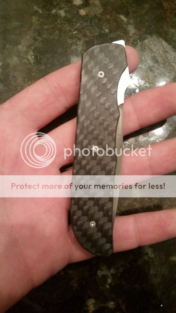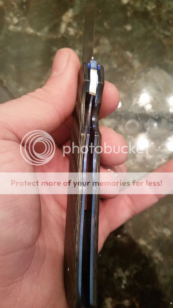 * Gareth Bull 3.25" Miura: Good Condition; good centering, carbon fiber is in excellent condition and the blue liners look great. There are a few light scratches on the blade (can be seen in pictures, the area around the pivot was just a bit dirty) and there is some vertical blade play, priced accordingly. As you can see from the pictures this is a linerlock version, it is extremely light to carry, very smooth. SOLD CONUS only, unless arrangements are agreed to