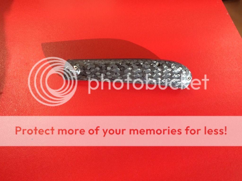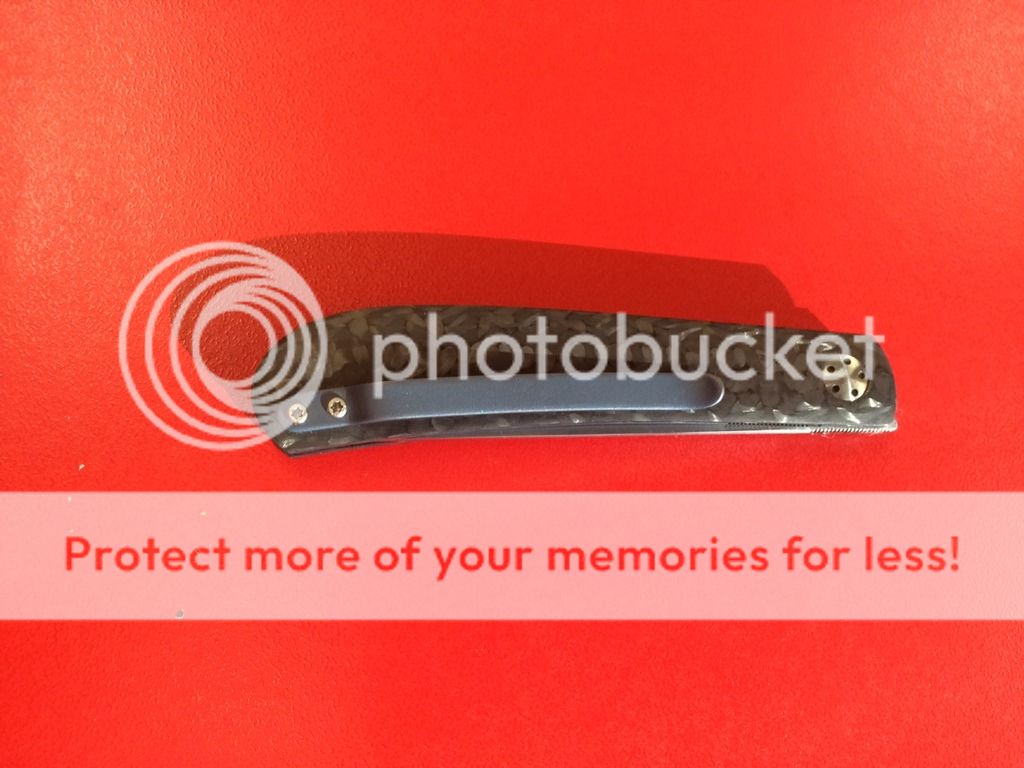 The scales are carbon fiber, has blue anodized Ti liner, clip, and file backspacer.