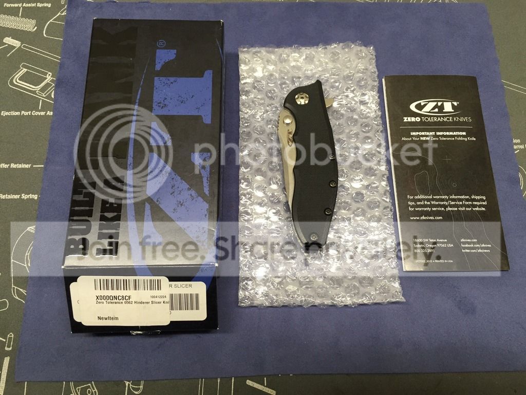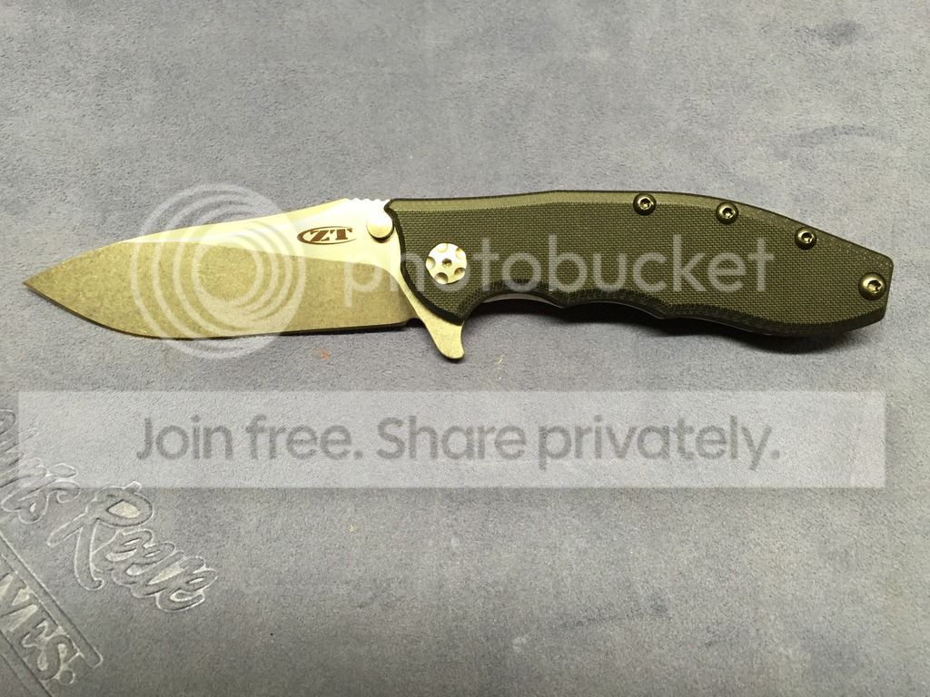 ZT0562 Elmax/G10 in excellent condition. Fondled and carried a few times but hasn't cut more than paper. Factory sharp blade never sharpened or stropped. Slight "ding" in G10, came like that new (see last picture). Includes box, paperwork, etc. SOLD