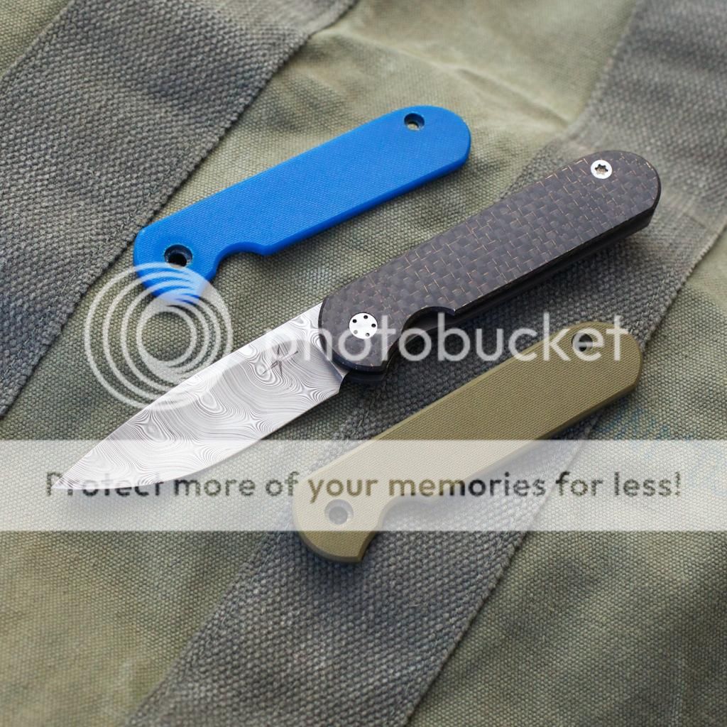 Also have this KA Dog Tag knife that Dave just made right before the holidays. Pretty cool little neck knife. It's moonglow G10 and S30v steel. It's about 1.5" x .75" and 1/4" thick total (both layers). Really neat little knife.