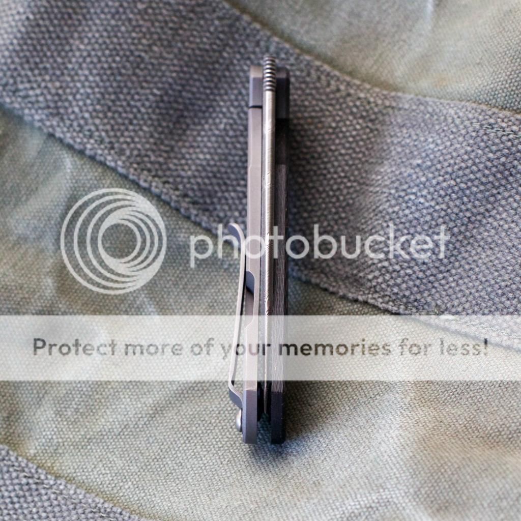 Fresh from the spa, lightly used Kingdom Armory Large Samaritan Custom. Only two like this and Daves books are closed as you know. This baby flips right open using the Spydie hole and has rock solid lockup. Blade is nice and sharp acid washed S30v. Blade is about 3.75 and total length is right at 8.75. Nice velcro pouch included. Has new clip on it now just made by Dave at KA. It goes into the pocket a little easier than the original clip (also included). As an extra bonus, Dave also installed an upgraded ti backspacer instead of the standoffs that it had originally.
